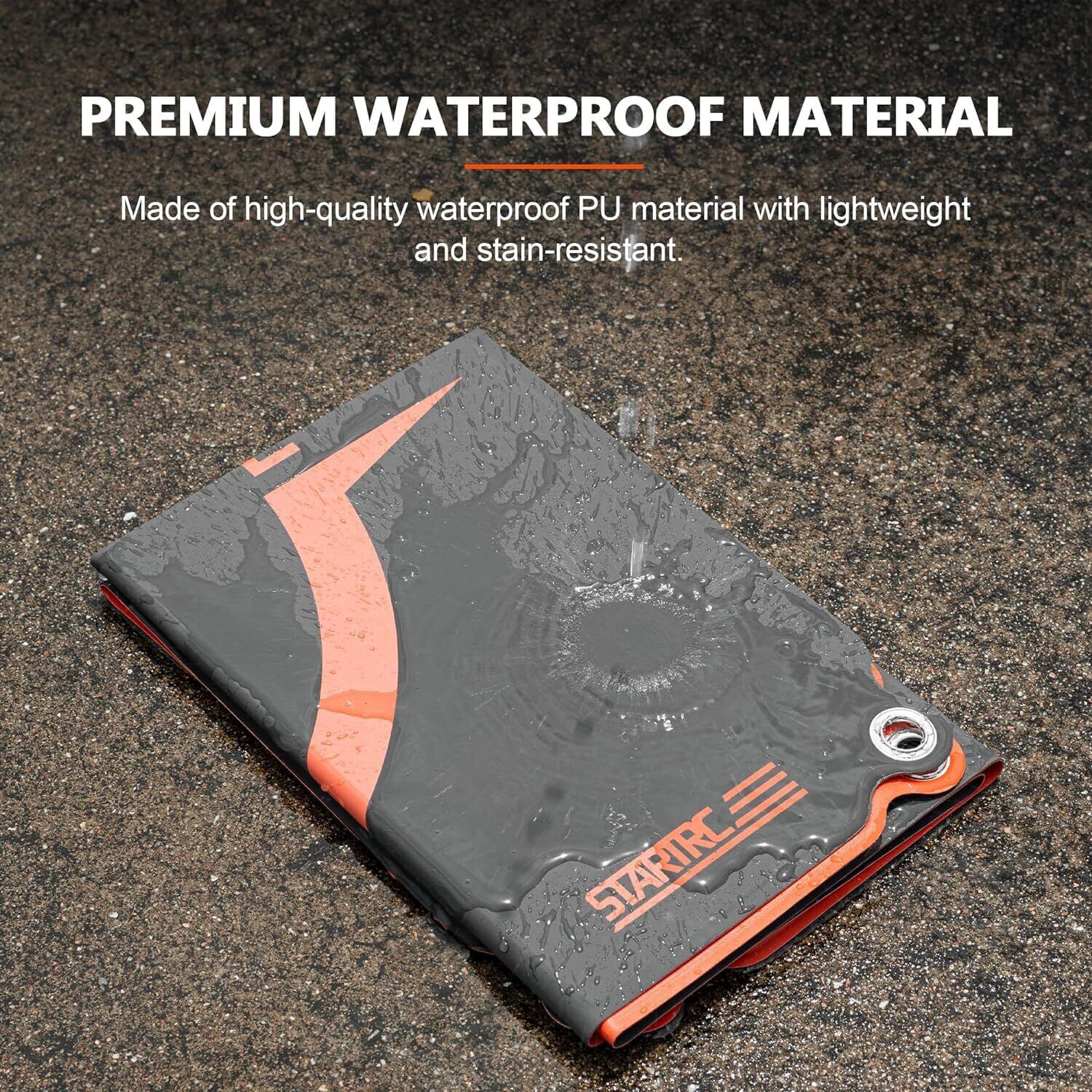 両面使用と防水設計:STARTRCランディングパッドは黒とオレンジの組み合わせで、鮮やかなオレンジ色が離着の位置を素早く判断しやすくしている。 高品質の防水PU素材でできているため、汚れや水に強く、ヘリパッドは水1本でリフレッシュできる。