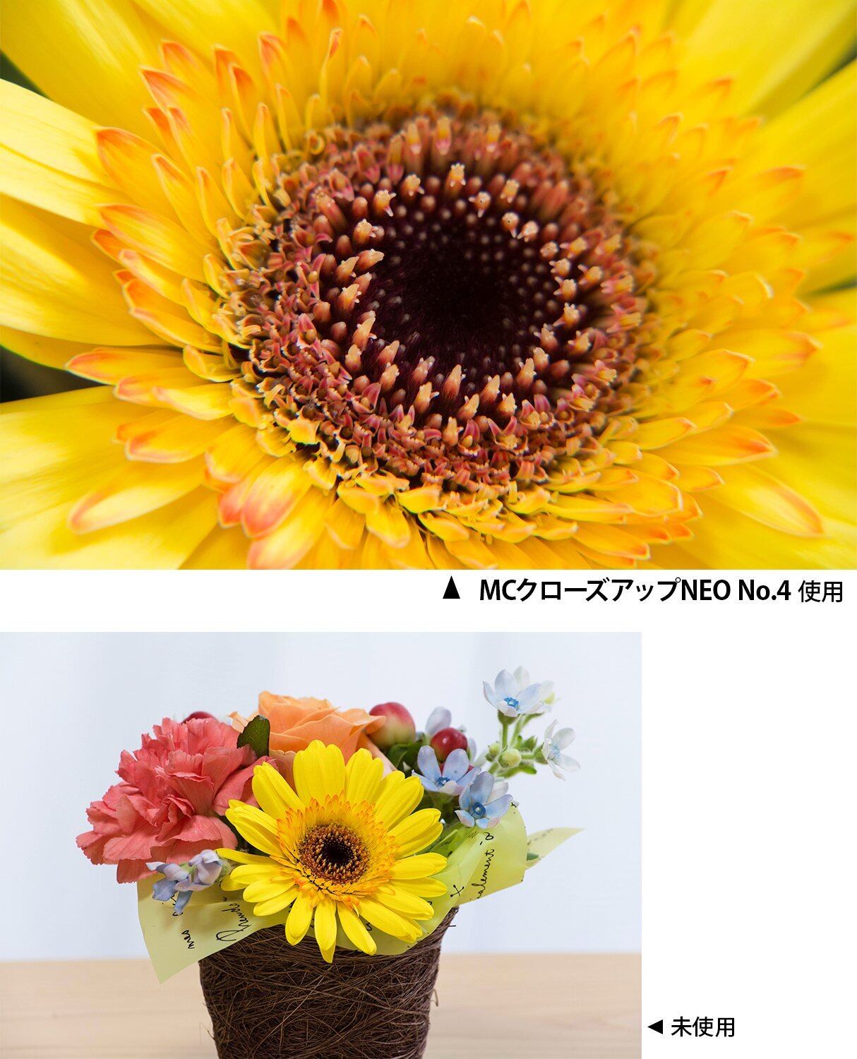 「MC クローズアップレンズ NEO」は最短撮影距離によってNo.1(約33~100cm)、No.2(約25~50cm)、No.3(約20~33cm)、No.4(約17~25cm)の4種類をラインナップ。一枚での使用はもちろん、通常のフィルターと同じように枠前面にネジがきってありますので、クローズアップレンズ同士を重ね付けることでより高倍率での撮影を行うことが可能です。PLフィルターなどの特殊フィルターとの併用も可能。