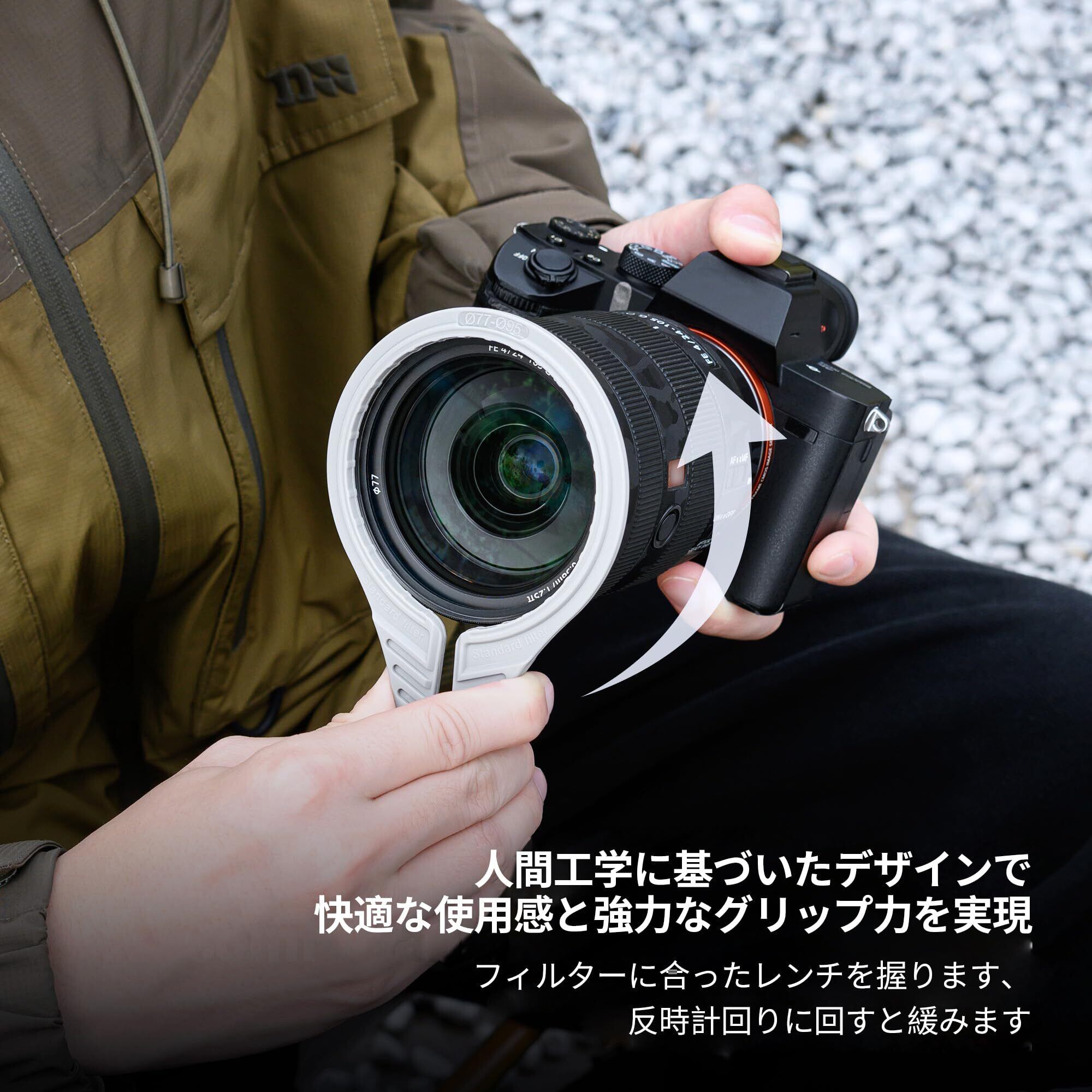 カメラレンズに装着したフィルターを外し、調整できます。デザインに人体工学を取り入れ、手触りが快適、使いやすいです
