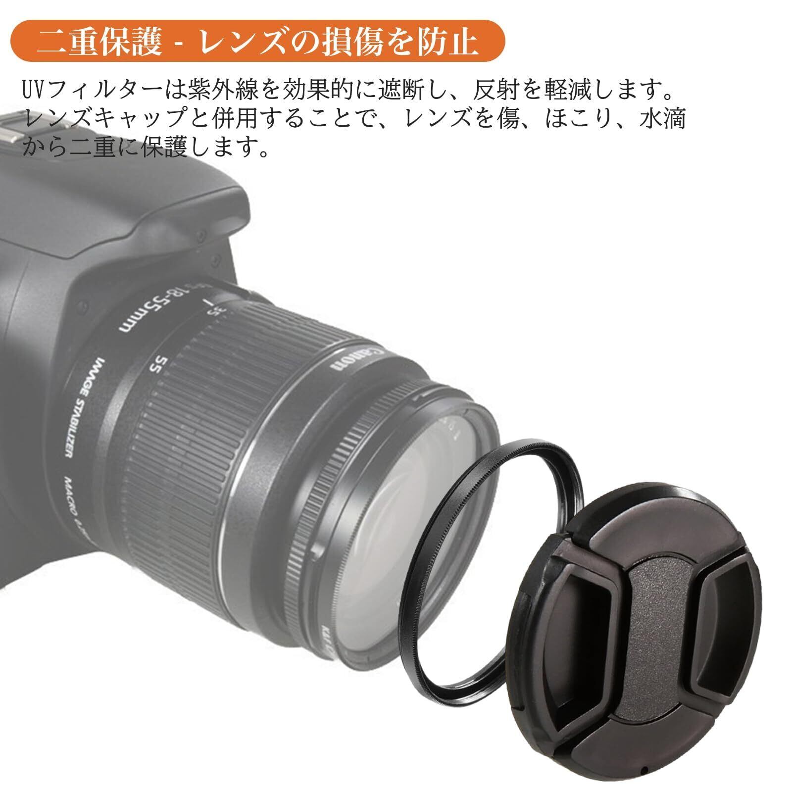 【高品質素材】耐久性のある素材を使用し、レンズ表面を傷つけることなくカメラレンズを保護します。高解像度UVレンズフィルターは、透過率最大95%の光学ガラスを使用し、多層コーティング、防水、防塵、防油機能を備えています。
