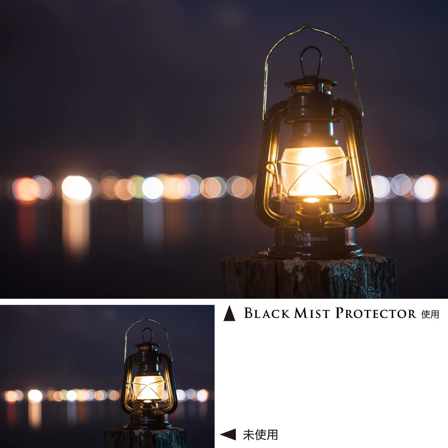 【ブラックミストフィルターとは?】非常に微細な黒い拡散材を光学ガラスで挟み込んだフィルターです。ハイライトとシャドウ部のコントラストを抑え、夜景などの光を印象的に拡散させ、まるで映画のワンシーンを思わせる絶妙なニュアンスを得ることができます。レタッチなしでシネマティックな質感を得られるのがブラックミストの魅力です。