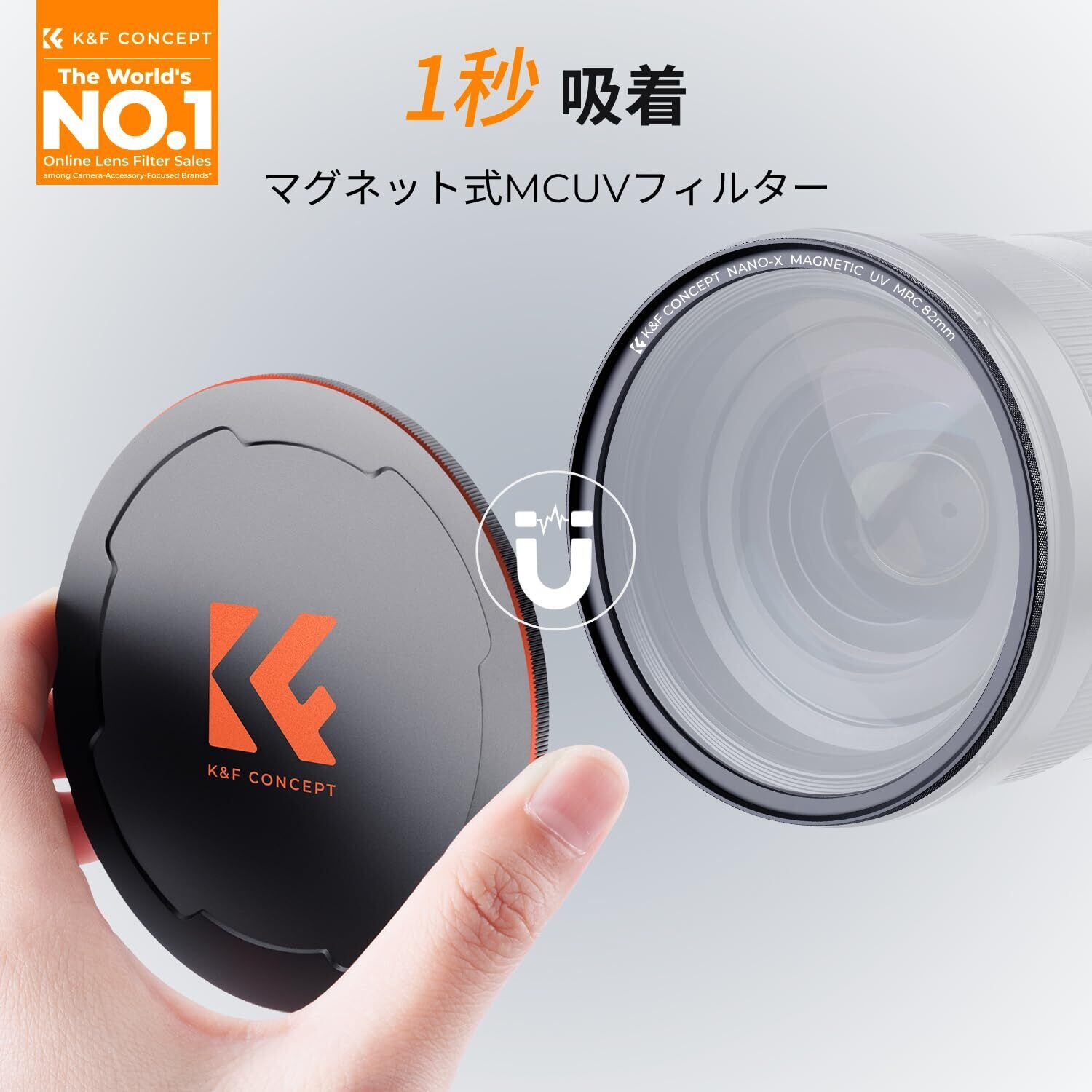 【磁気式で着脱が超簡単】磁力により脱着できるタイプなので、一般的なねじ込み式フィルターとは違い、77mmマグネットレンズ保護フィルターの脱着がとても手軽で短時間に行なえます。レンズフィルターをたった1秒で交換できます。K&F CONCEPTの他の磁気式フィルターと互換性があり、フィルターを重ねて使用できます。外装の新旧が混在しますが、中身は同一です。