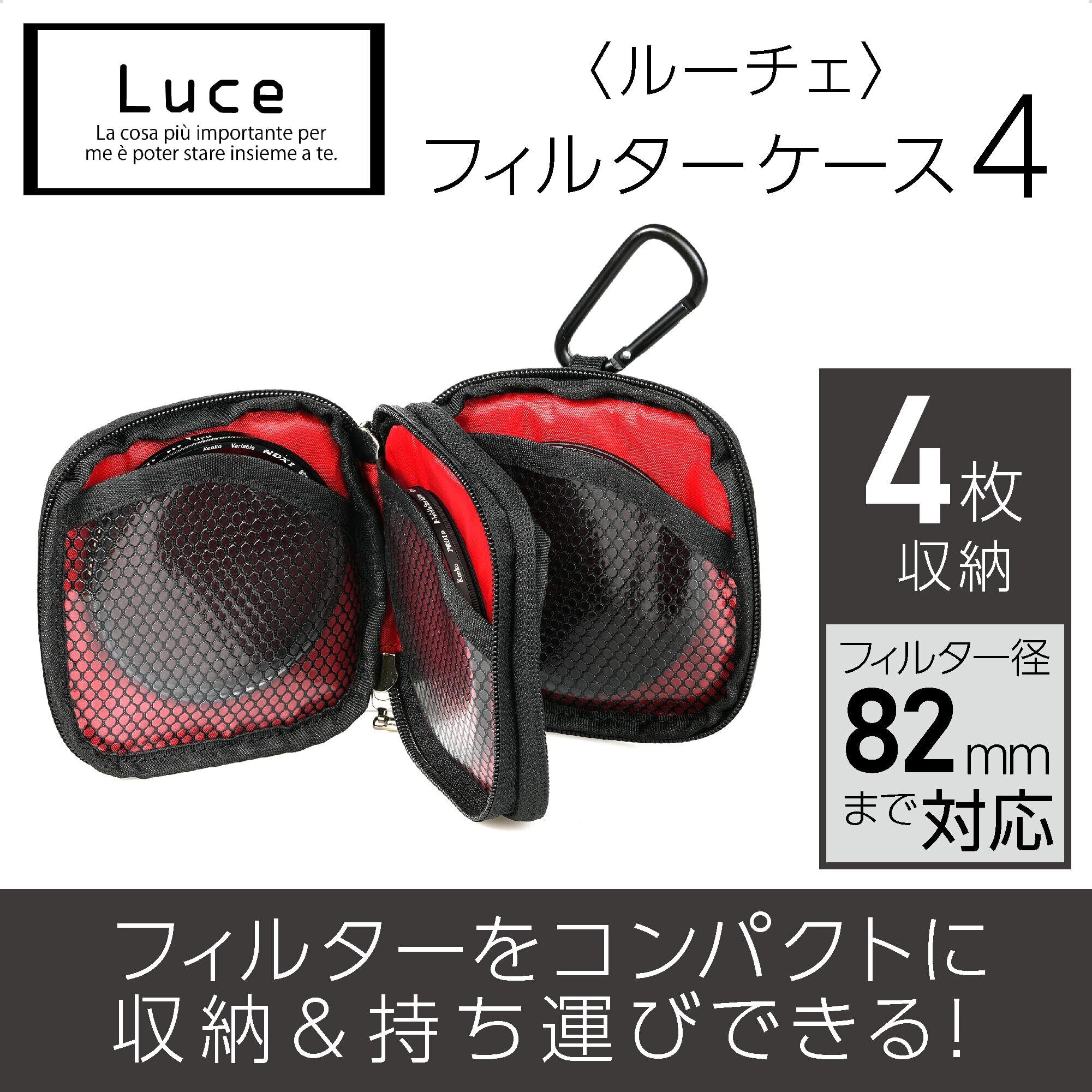 「Kenko LUCE フィルターケース 4 BKCF」は、82mmまでのフィルターを4枚収納することができるフィルターケースです。