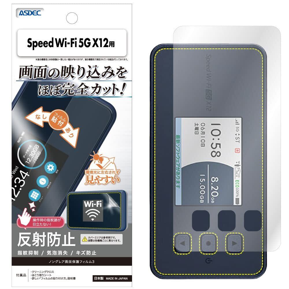 ASDEC Speed Wi-Fi 5G X12 フィルム 反射防止 アンチグレア 日本製 防指紋 気泡消失 映込防止 NGB-NAR03/スピードワイファイファイブジーエックス12 NAR03 保護フィルム ノングレアフィルム
