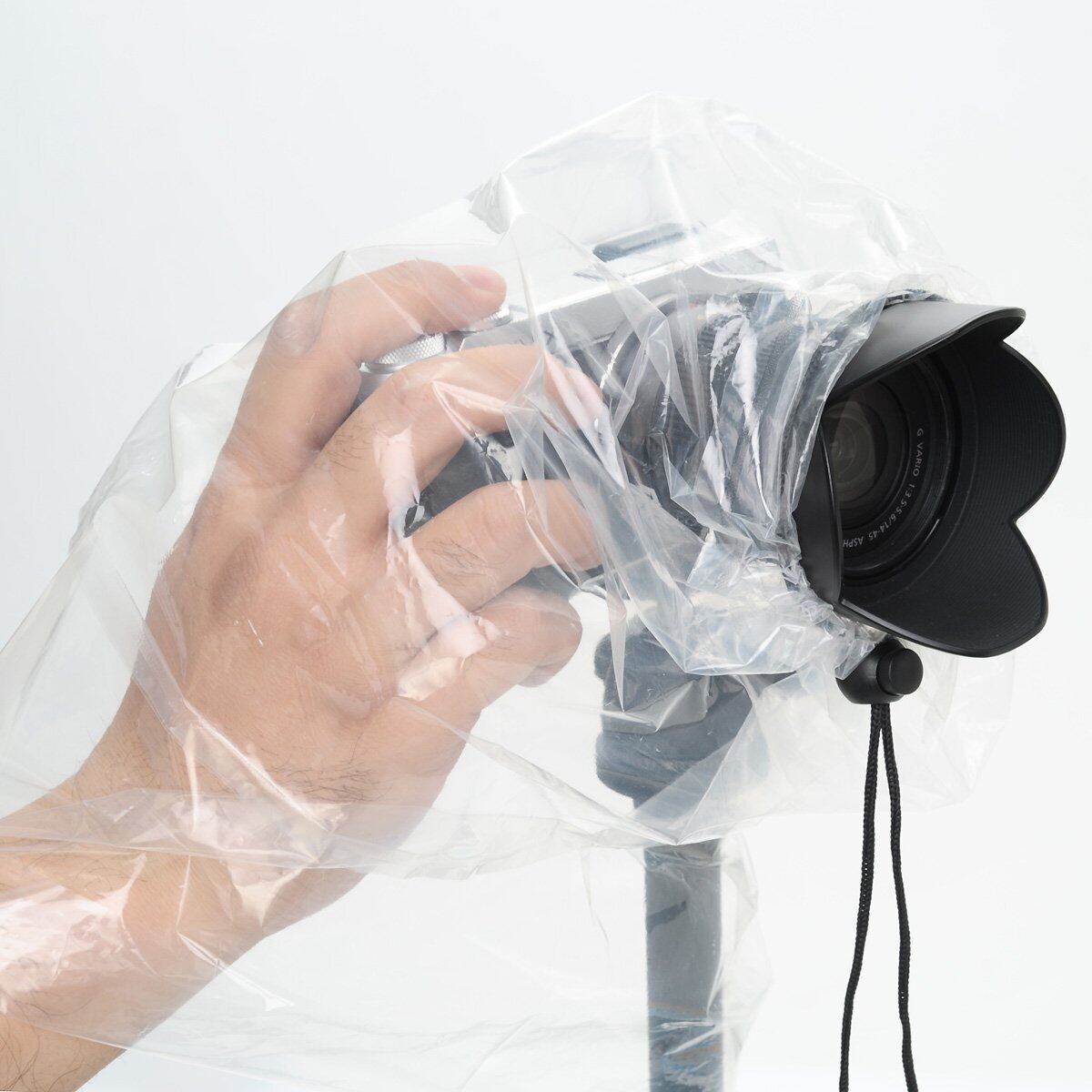 持ち運びに便利な簡易タイプのレインカバーです。ミラーレスカメラ・小型一眼レフカメラに適したスモールサイズ。突然の小雨や雪への備えとして常備してください。また、固定撮影時の防塵かばーとしても役立ちます。