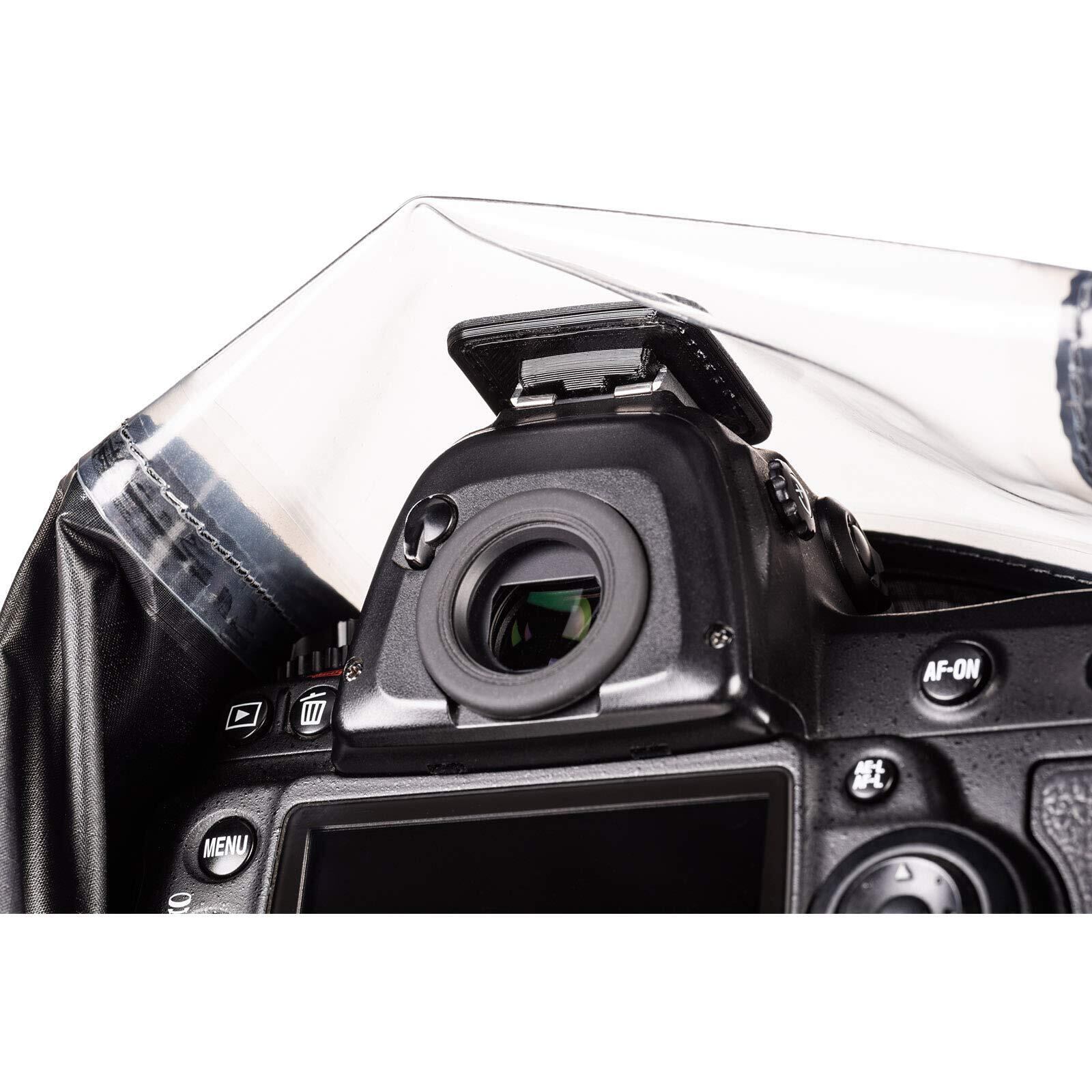 簡単にカメラとレンズに装着できるレインカバー。