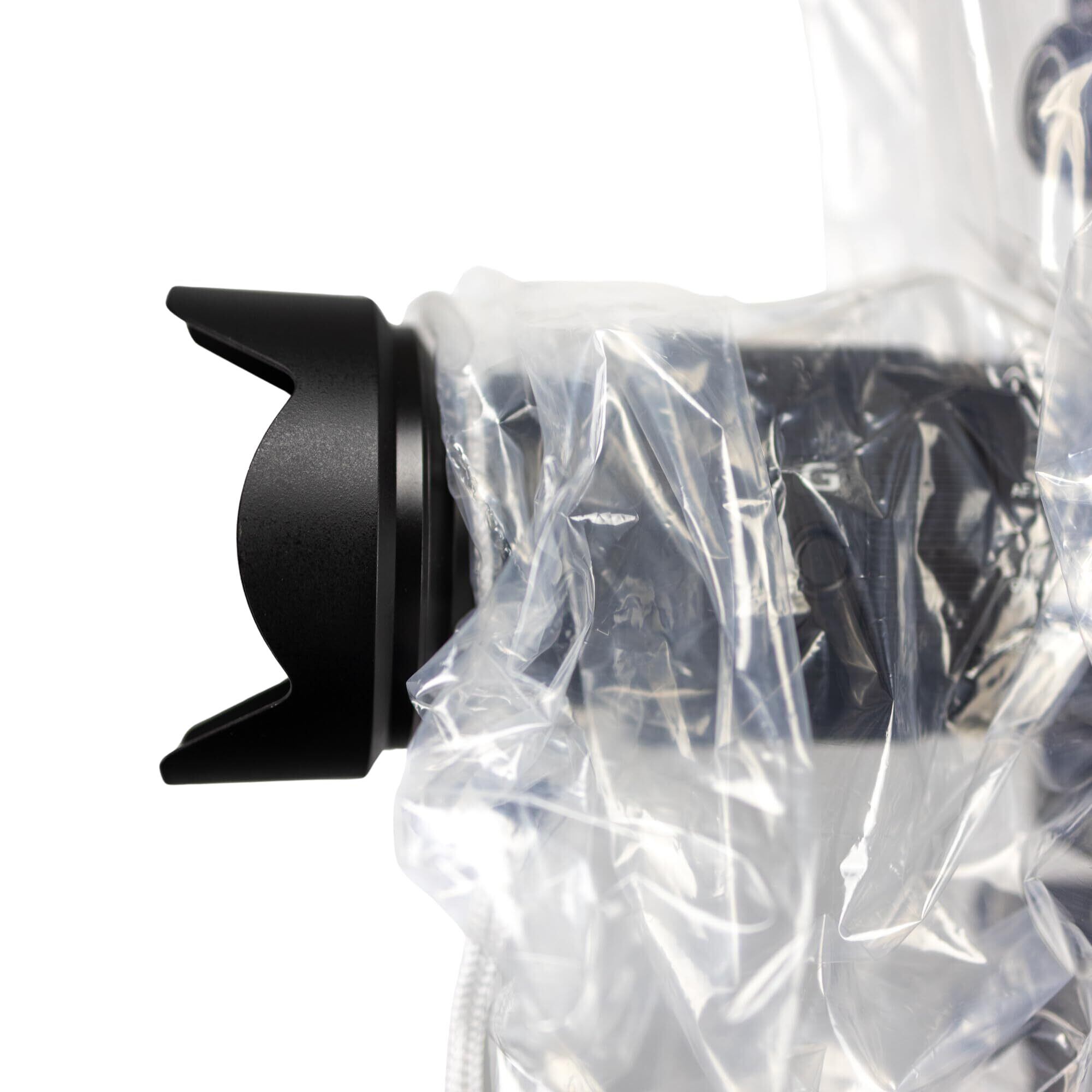レインスリーブに新しく仲間入りしたのが、このレインスリーブ・フラッシュです。このモデルはカメラのフラッシュ部分を想定したふくらみが用意されているので、カメラにフラッシュを付けたまま上から被せることが出来ます。フラッシュは水か掛かるととても危険なので小雨などでもどうしてもフラッシュ撮影をしなければならないとき、このレインスリーブ・フラッシュがあると重宝します。