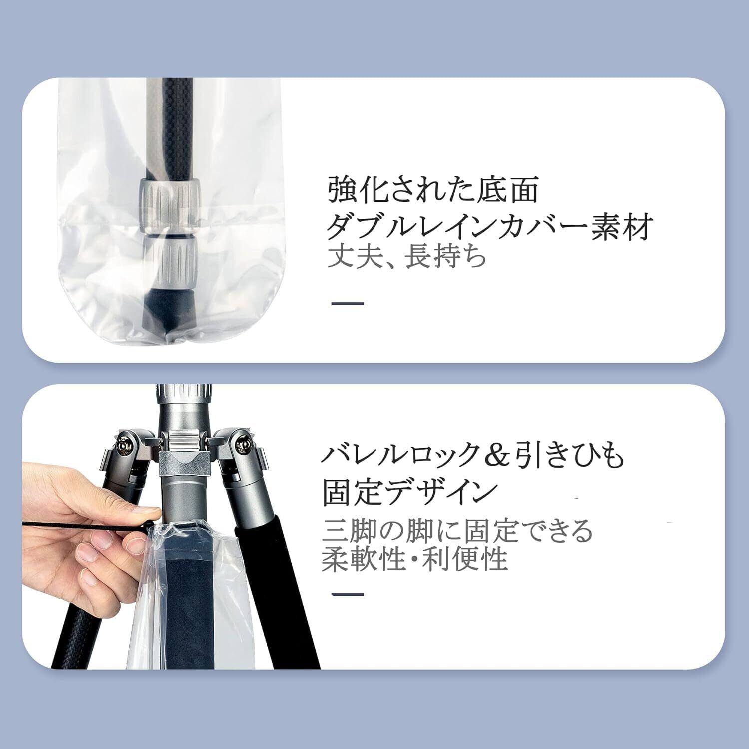 【脚カバー】PE素材製の三脚のカバーで、透明性にも優れ、小さく収納でき、三脚ケースに常備しておくと急な天気の変化にも安心です。