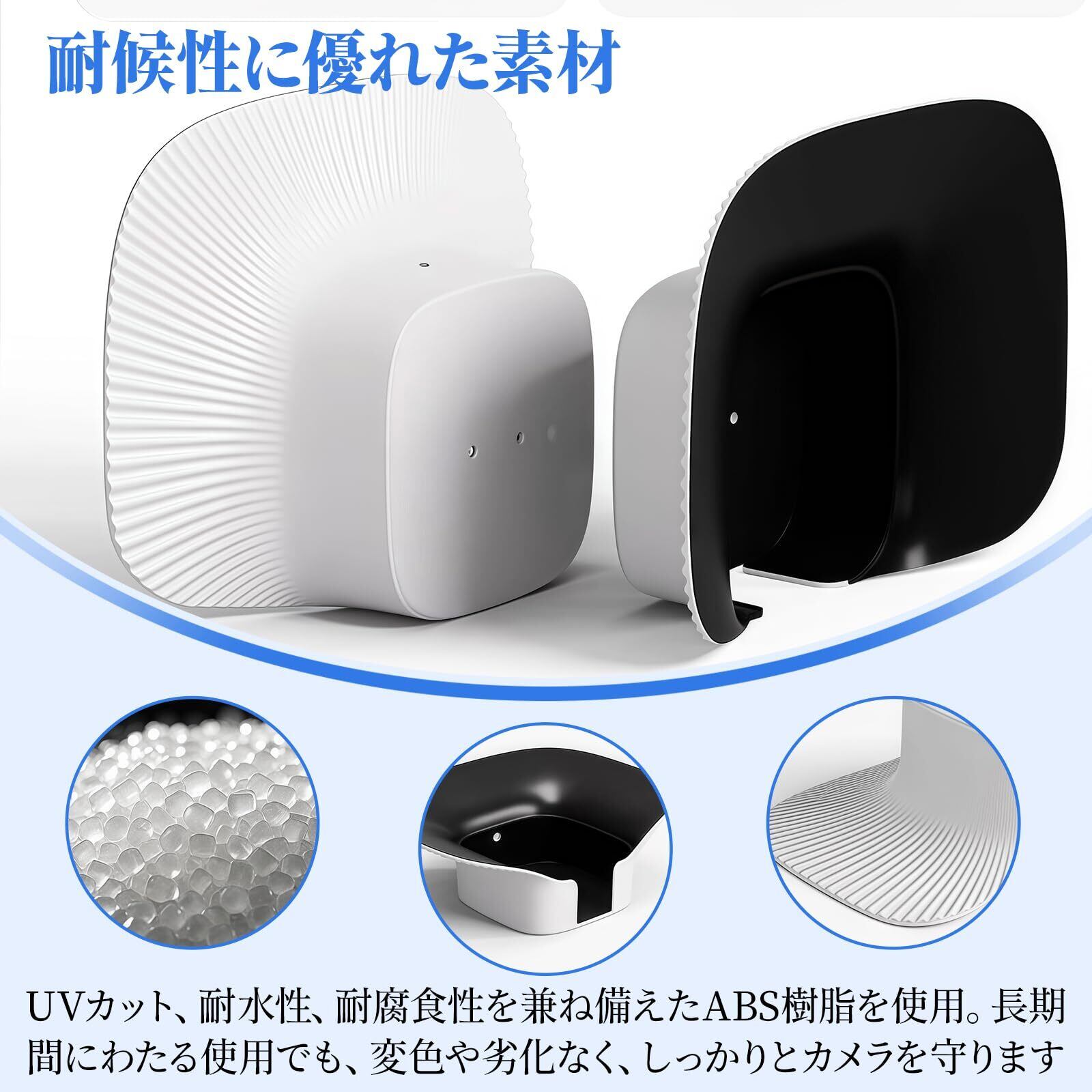 【耐候性に優れた素材】UVカット、耐水性、耐腐食性を兼ね備えたABS樹脂を使用。長期間にわたる使用でも、変色や劣化なく、しっかりとカメラを守ります。 【全天候型保護】雨や強い日差し、ほこりや風など、どんな外的要因からもカメラを保護し、環境に左右されることなく長期間使用できます。 【コンパクトで取り扱い簡単】コンパクトな設計で収納や取り付けが簡単。設置場所を選ばず、どんな環境にもフィットします。 【シンプルで洗練されたデザイン】ホワイトのシンプルな外観は、機能的でありながら美観を高め、どんな場所にも違和感なく馴染みます。 【簡単に設置可能】取り付けが非常に簡単で、特別な工具を必要とせず、素早くカメラを設置できます。位置の調整も簡単で、時間をかけずにセット完了。