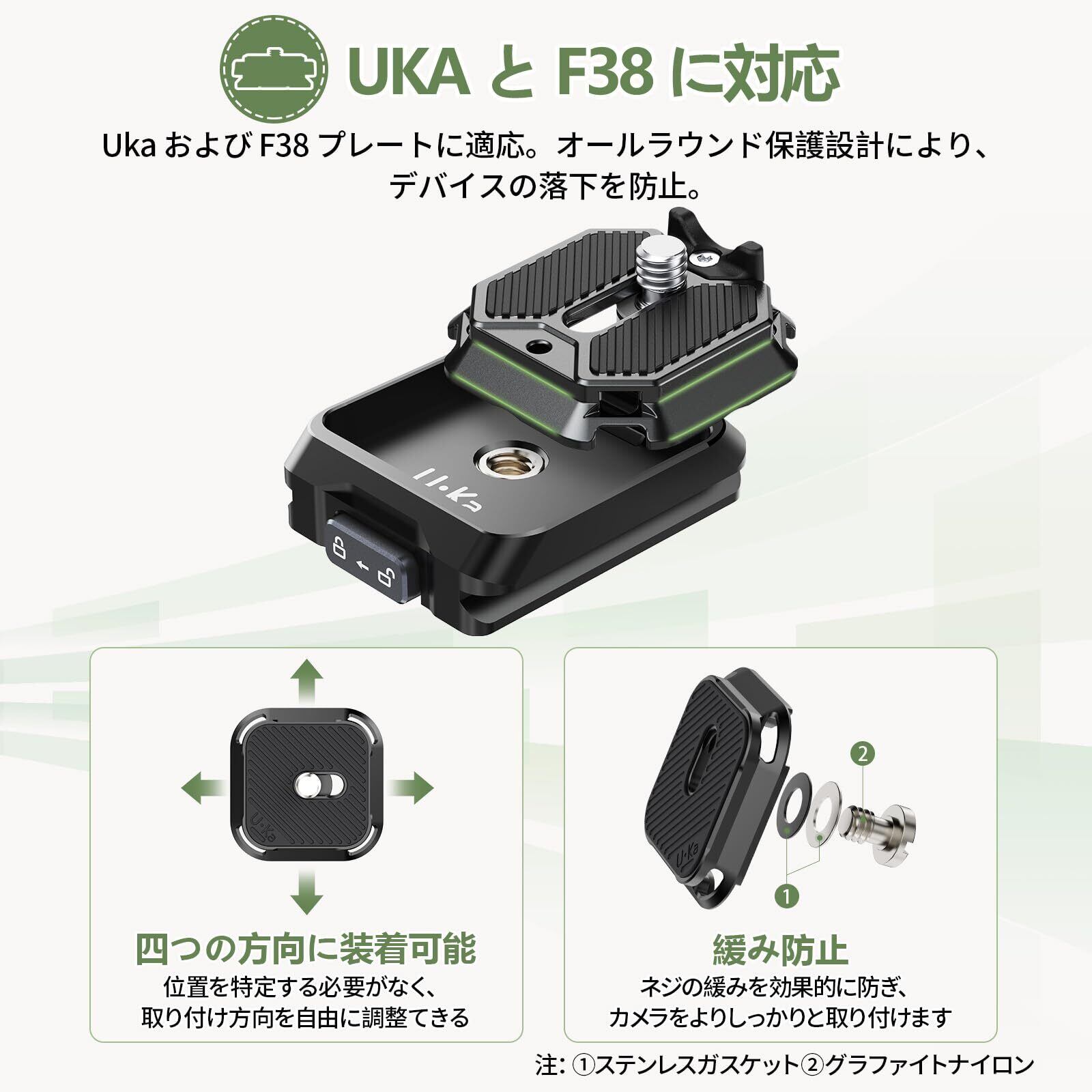 Ulanzi Uka用クイックリリースセット F38プレート対応 カメラアクセサリー 38mm アルカスイス対応互換 クイックシュー クイックリリースプレート クイックマウント 緩み防止 1/4"ネジ 3/8"ネジアダプター Maglink/ストラップ/雲台/三脚/カメラ用