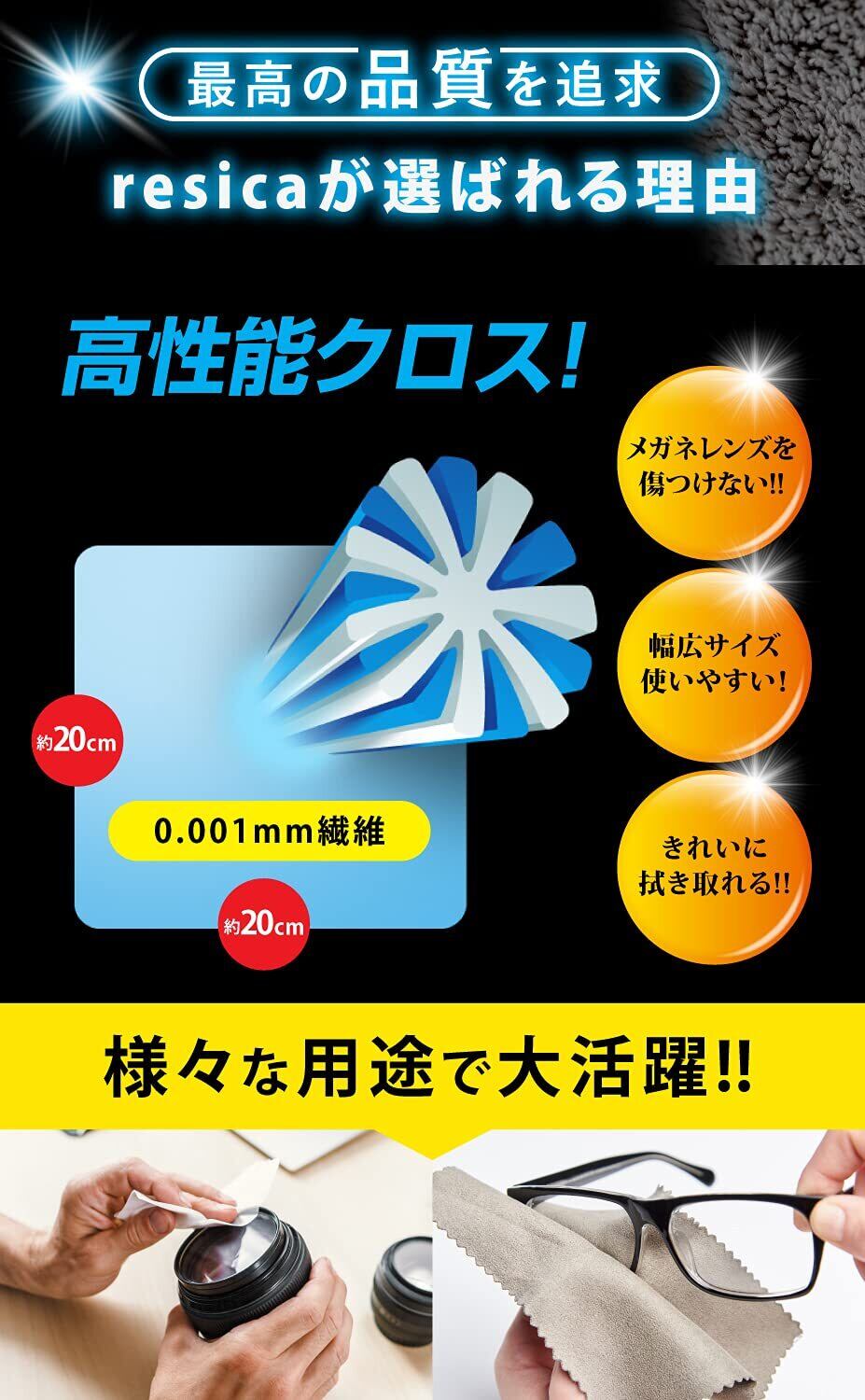 【商品説明】レンズに優しい素材、繊維を厳選した レンズ クリーナー クリーニングクロス です。