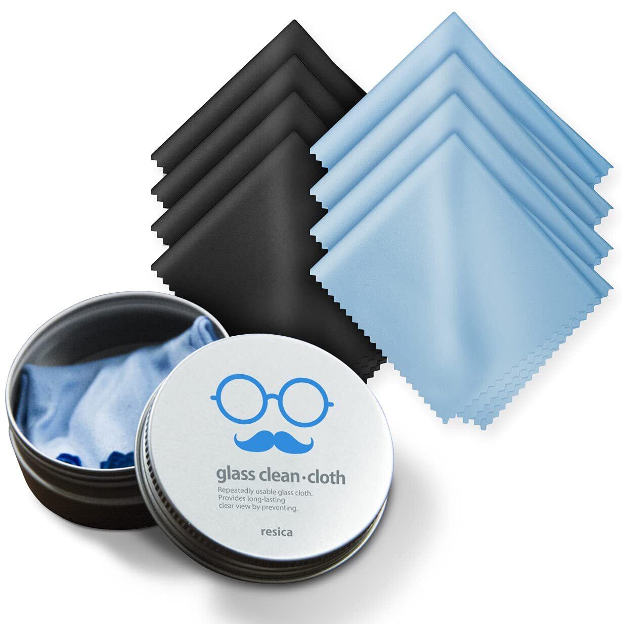 【セット内容】 めがねふき クリーニングクロス ライトブルー4枚、ブラック20cm×20cm 4枚計8枚入り