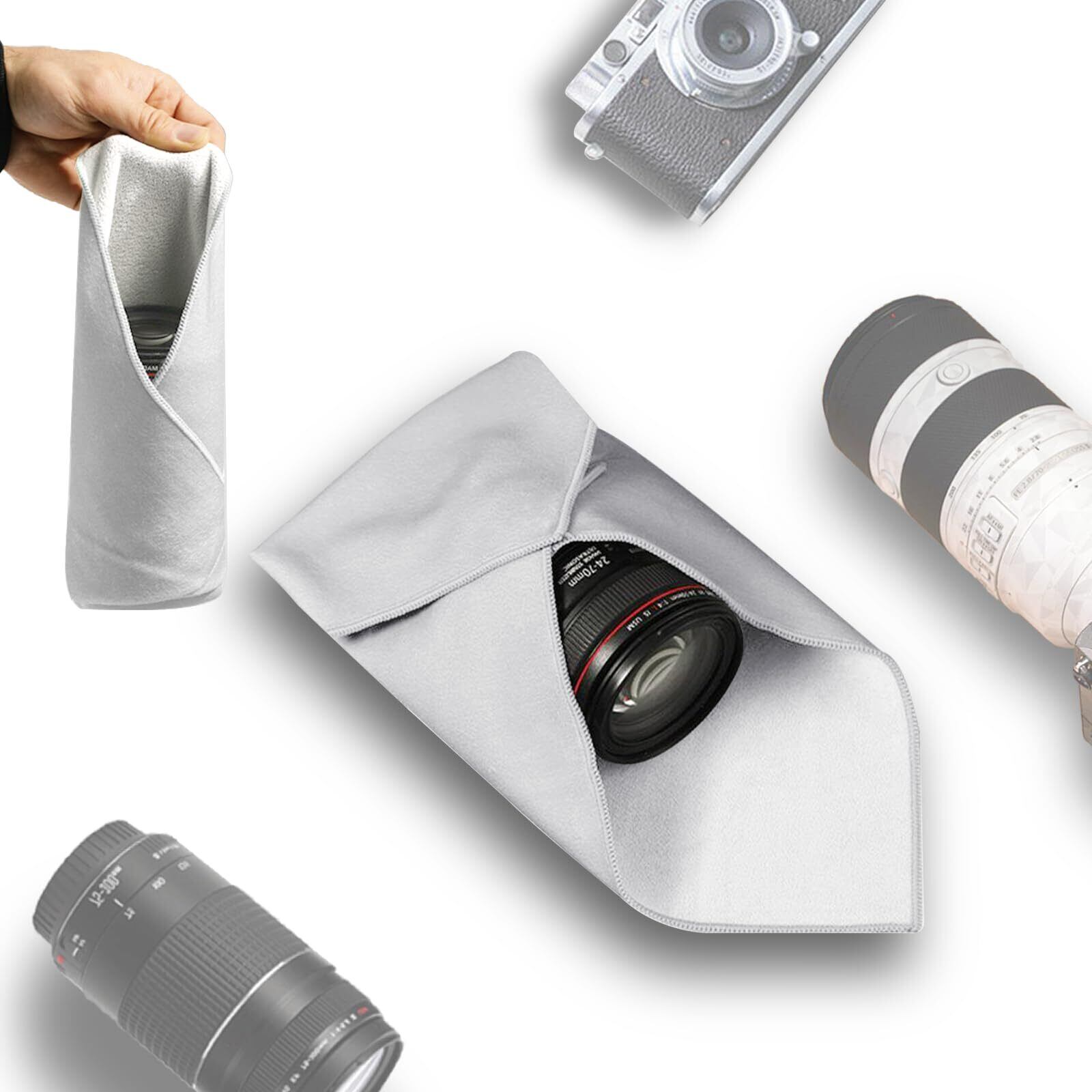 カメラ用ラッピングクロス くっつくタオル カメララップ カメラクロス カメラ保護 クリーニングクロス ピタットくっつくクリーニングクロス レンズ保護 プロテクトラップ ミラーレス カメラ アクセサリ 持ち運び コンパクト カメラ/レンズ/スマホ/タブレット 傷防止カメラケースバッグ (グレー 35cm×35cm)