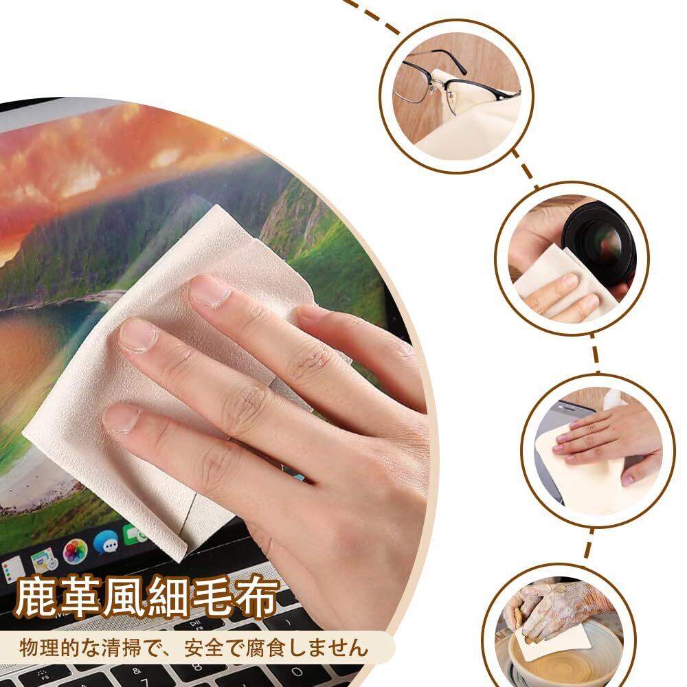 【ナイロン製スエード調素材で表面を傷つけません】繊維が緻密で柔らかく、硬質粒子を含まないため、メガネコーティング・スマホ画面・ジュエリー表面を傷つけず、普通の布が「高価な物品を傷つけやすい」という問題を解決します。