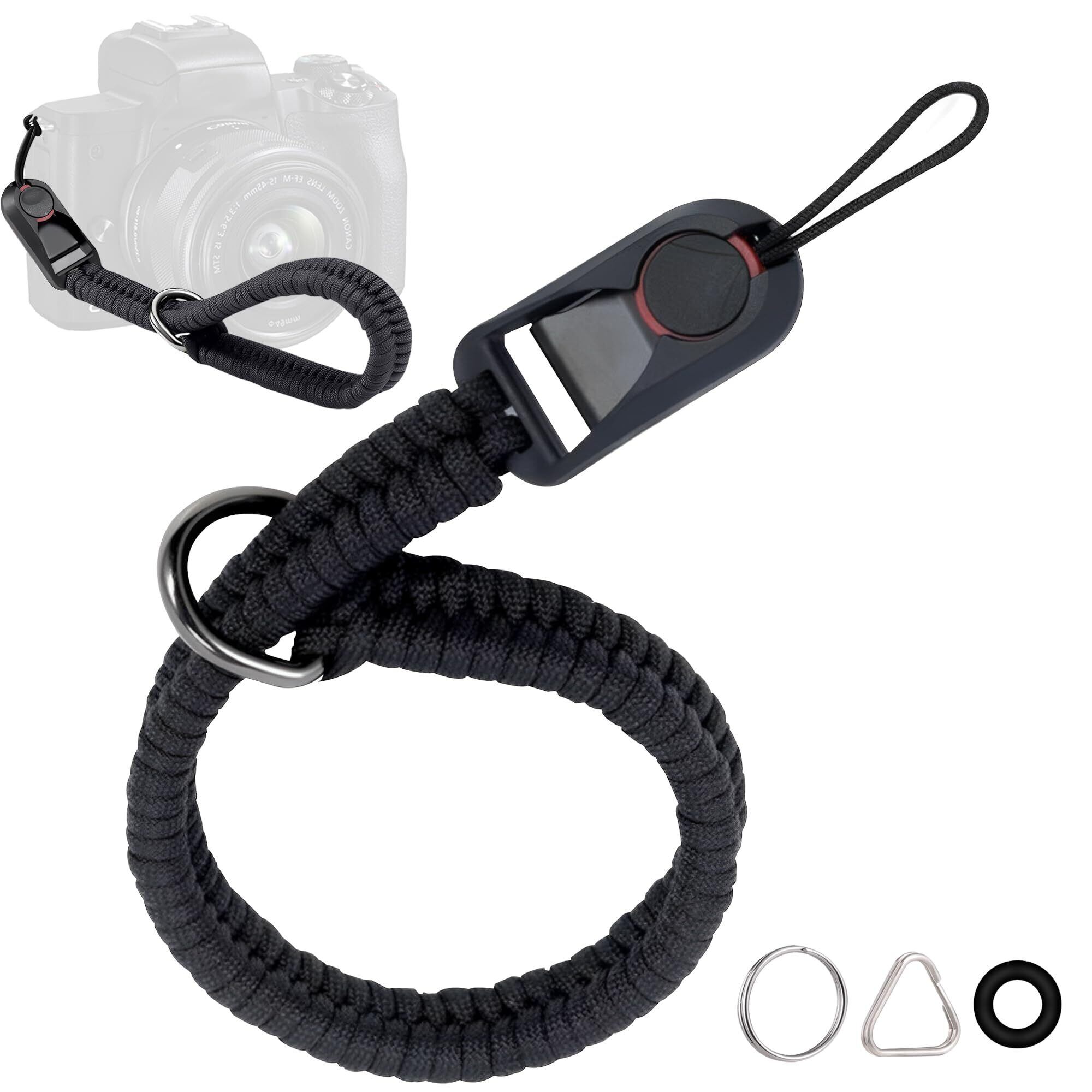 【2022最新】[ZXZone] カメラストラップ パラコード編みハンドストラップ、クイック着脱、付属のアダプタはほとんどの一眼レフカメラに使用でき、設置が便利。おしゃれ金属部品には高度な研磨処理が施されている (ブラック)