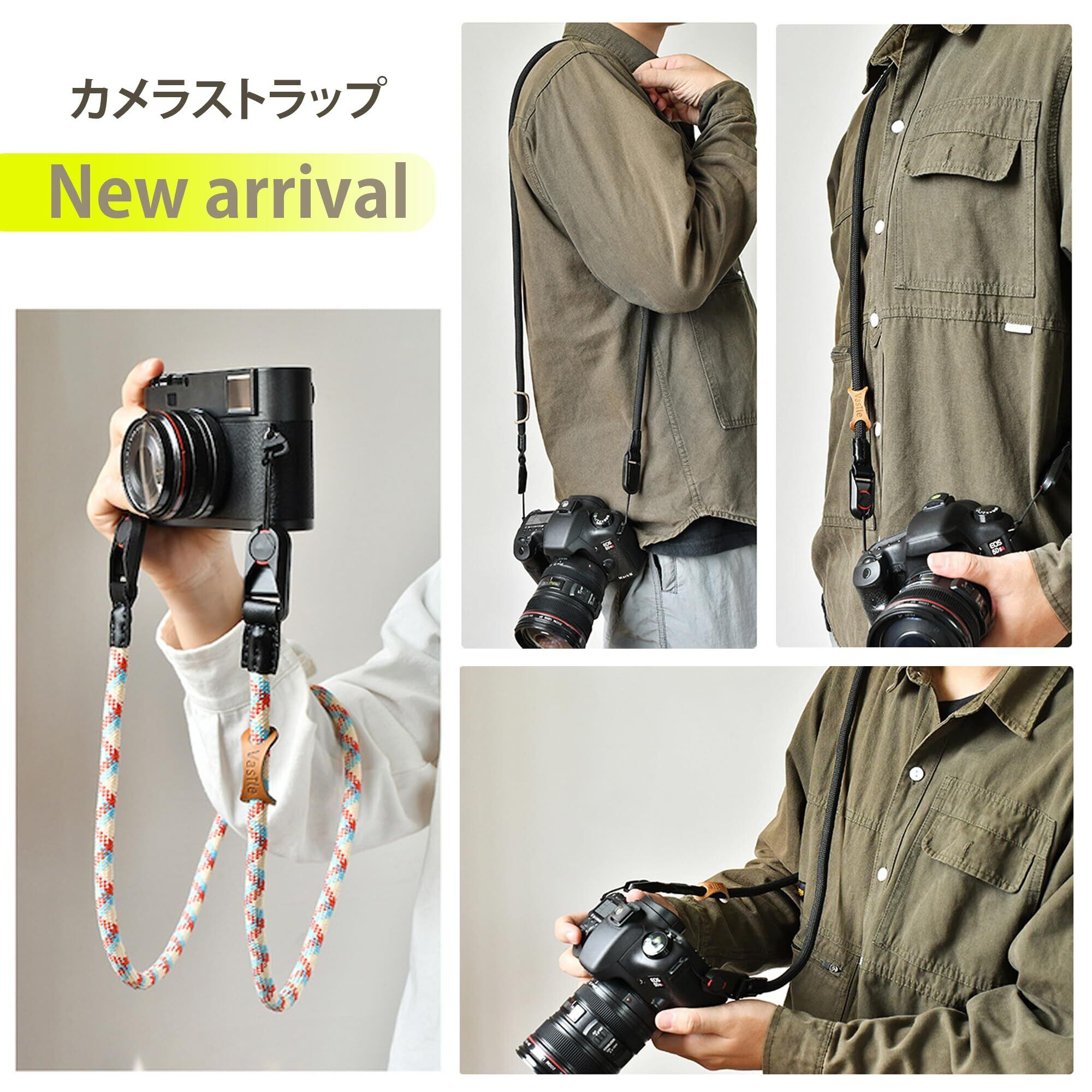 1. 上質素材×高耐久仕様 約1cm径の登山用ロープと本革パーツを組み合わせた高耐久設計。しなやかさと強度を両立し、アウトドアや日常撮影にも対応。結び目で長さ調整が可能で、装着や調整もスムーズ。高機能でありながら洗練されたデザインです。