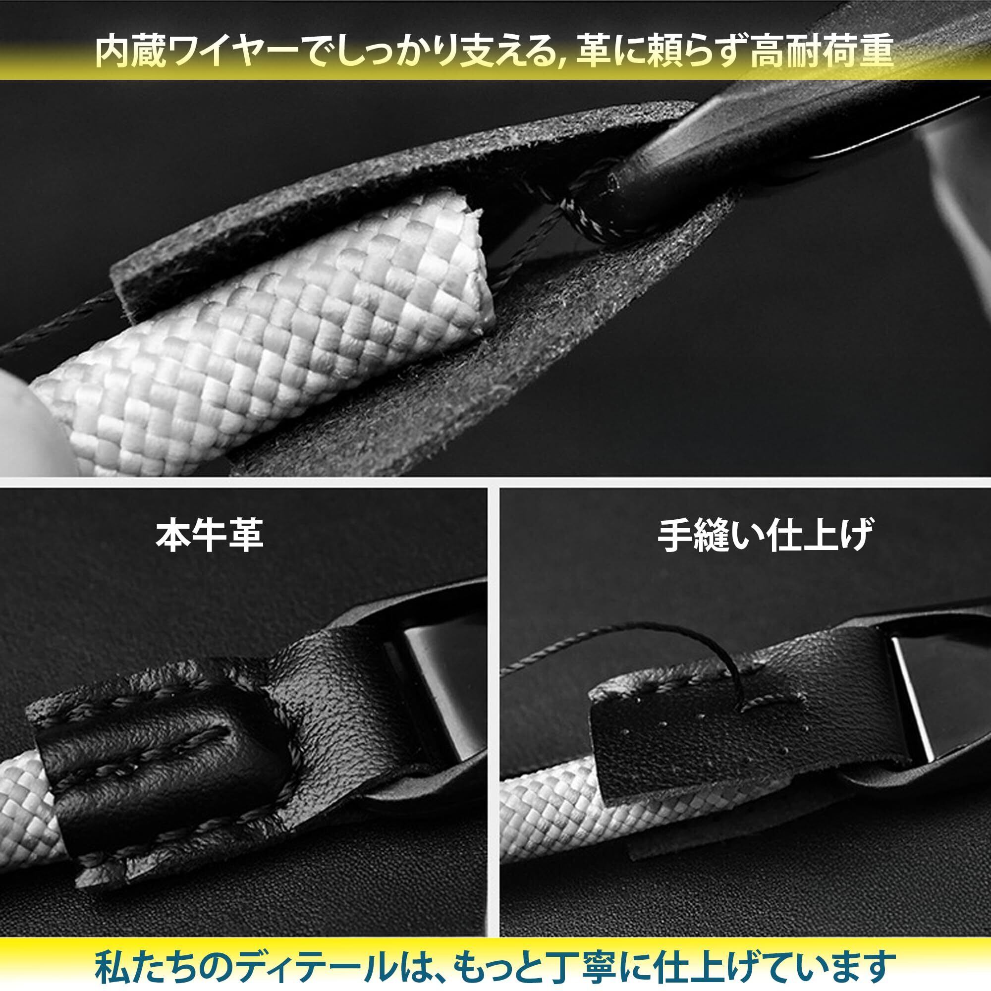 3. 本革フック付きの多機能設計 鍵や小物、IDカードなどを本革フックに掛けて携帯可能。カメラストラップとしてだけでなく、日常のお出かけや旅行時にも便利。実用性と上質感を兼ね備えたカメラアクセサリーです。