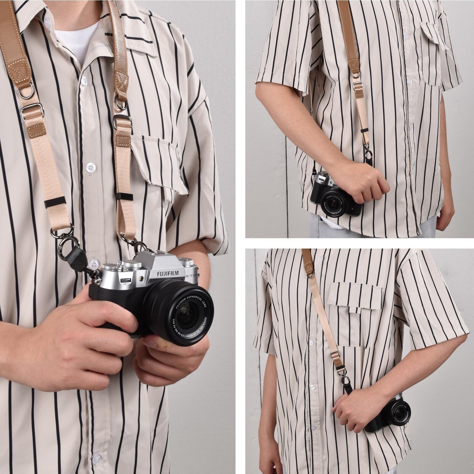 【多機種対応安心選択】富士 X-T50/XS20 / ソニー ZVE10/A7CII / キヤノン R50/R6 / ニコン ZFC など多数機種に対応。購入前にストラップ穴の形状を確認すると,より安心です。