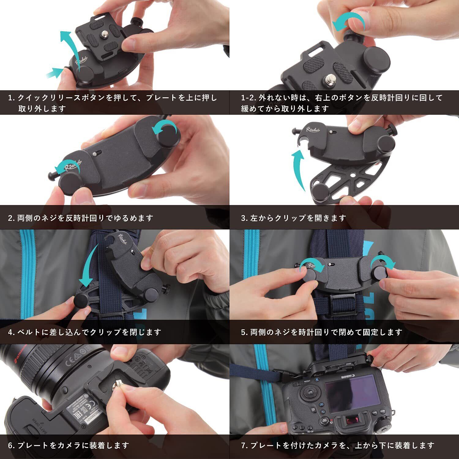 [Ryeshel] カメラホルスター クイックリリース カメラホルダー ショルダーホルスター 1/4ネジ カメラリュック 登山 旅行 バックパッククリップ キャプチャー型 簡単脱着 リュッククリップ ウエストクリップ ベルトクリップ 一眼レフ DSLR Digital SLR Camera アクションカメラ
