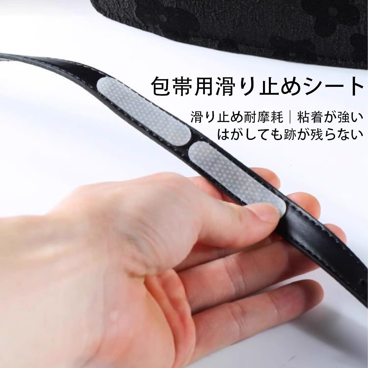 【素材の種類】ゴムとは違う、柔軟なシリコンタイプの滑り止めマットで、ソフトな感触と耐久性に優れています。セットには滑り止めシリコンストラップ12本、サイズ82×19mmの大きいショルダーストラップ用滑り止めシール6枚、サイズ69×19mmの小さいショルダーストラップ用滑り止めシール6枚が含まれています。
