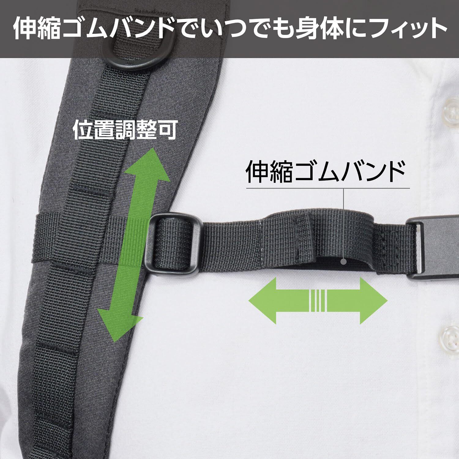 チェストベルトを取り付けることで、リュックベルトが必要以上に広がらなくなり、肩からずれ落ちるのを防いでリュックが身体にしっかりフィットします。