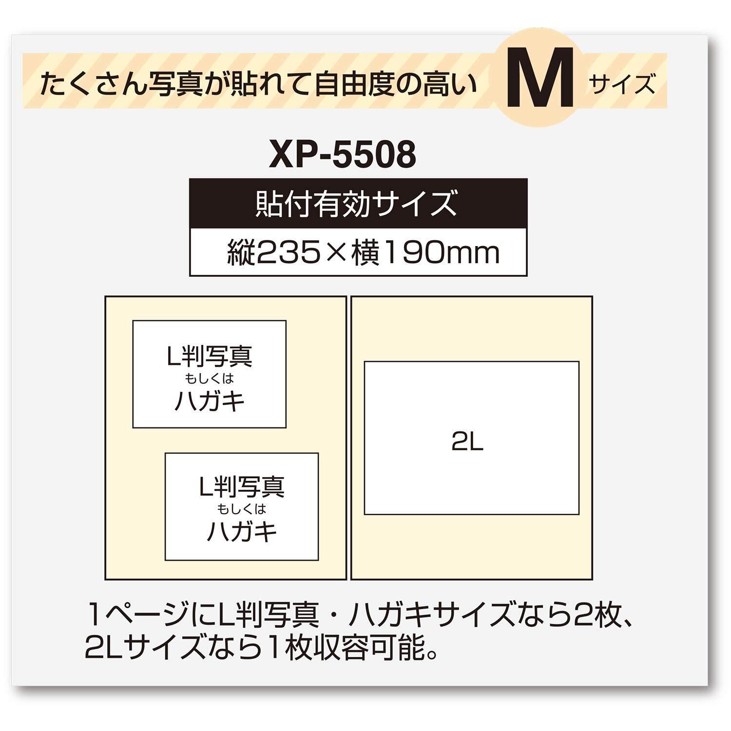 表紙にフォトフレーム付 L判写真を表紙のフォトフレームポケットに収容することができます。 台紙に直接文字が書き込めます ボールペン、サインペン、色鉛筆などで直接台紙に書くことができます。 貼り直しができるフリー台紙 粘着力が軽い台紙なので、写真の貼り直しが可能です。 台紙が増やせるビスタイプ ビスはコインで簡単にはずせます。 たくさん写真が貼れて自由度が高いサイズ 1ページにL判写真・ハガキサイズなら2枚、2Lサイズなら1枚収容できます。