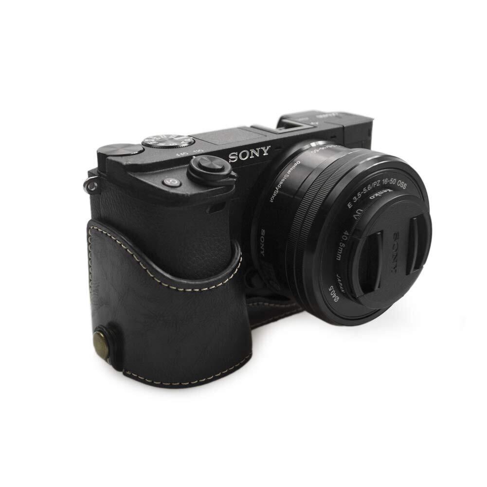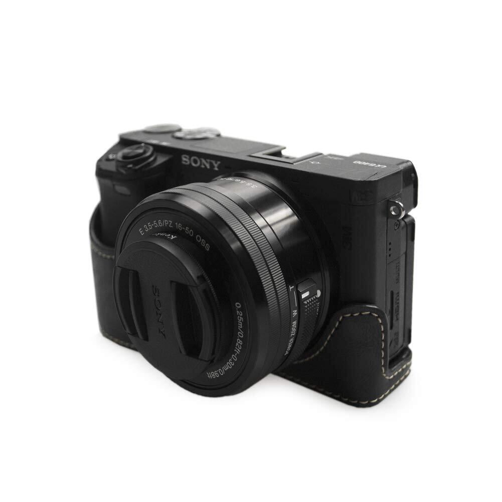 【数量限定】kinokoo SONY ソニー A6400 A6100専用カメラケース ボディケース バッテリーの交換でき 三脚ネジ穴付き リストストラップ (ブラック)