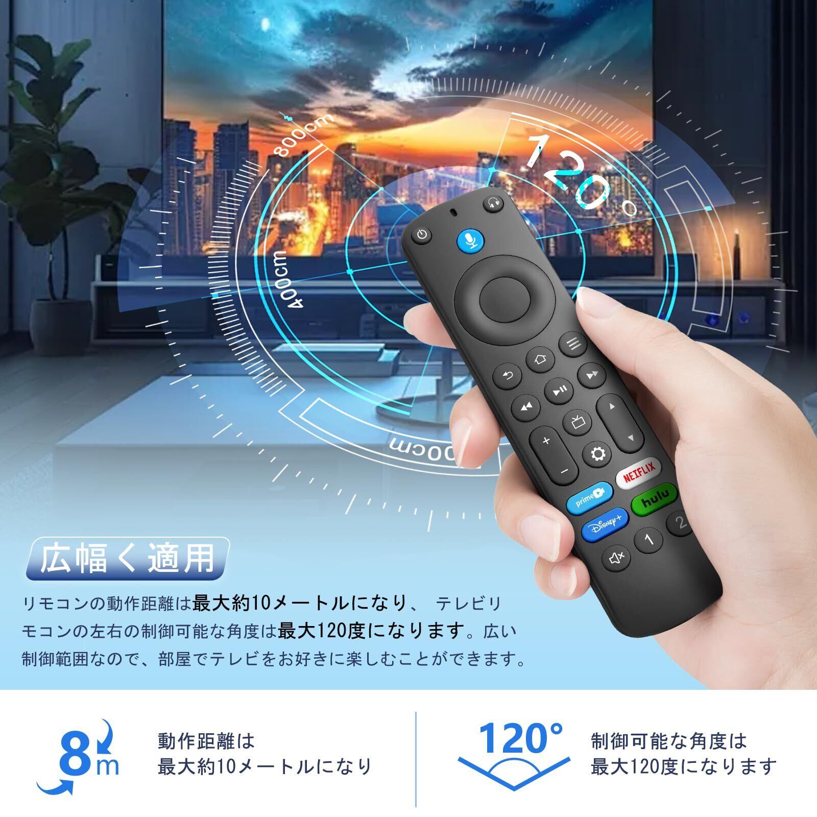 【快適な操作】リモコンのみの動作距離は最大約8メートルになり、左右の制御可能な角度は最大120度になります。3個 アプリダイレクトがあり、それを直接起動することができます。ボタンの製作は高品質のABS素材を使用するので、柔らかく耐久性があり、押し心地がアップします。