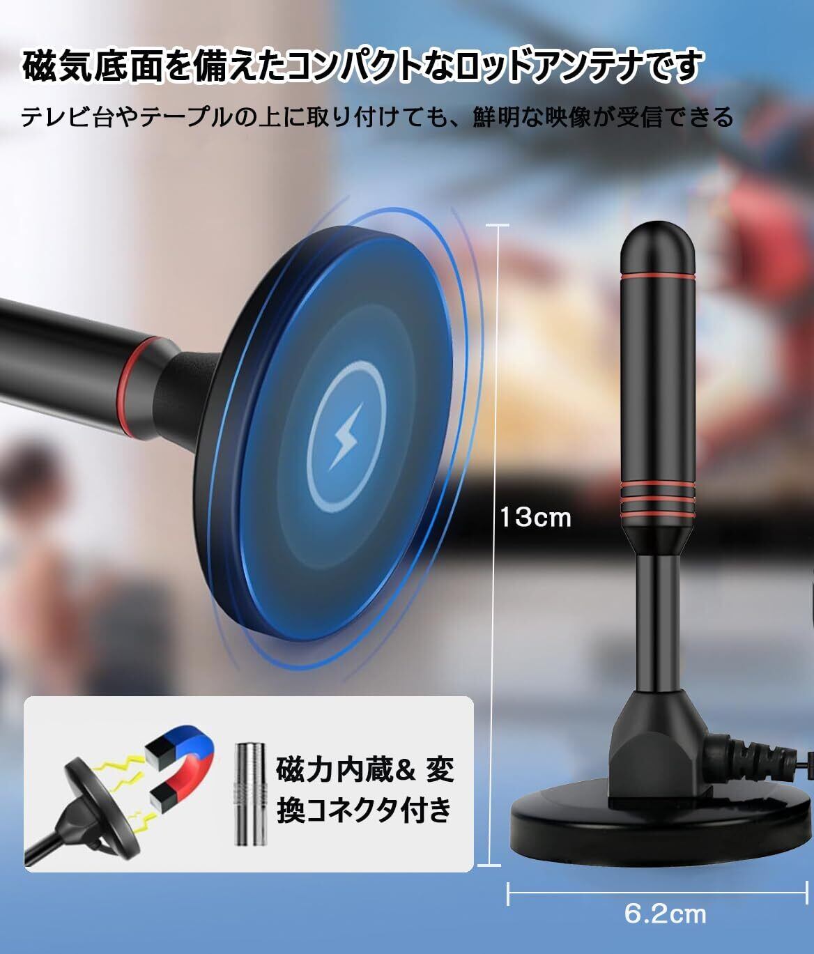 【2022最新】【2026年改良モデル 室内アンテナ】 テレビアンテナ室内 最強 地デジアンテナ 4K HD 無料視聴 530KM受信範囲 車載 高感度 USB式 簡単接続 磁力 固定 高性能 UHF VHF対応 信号ブースター内蔵5m 日本語取扱説明書