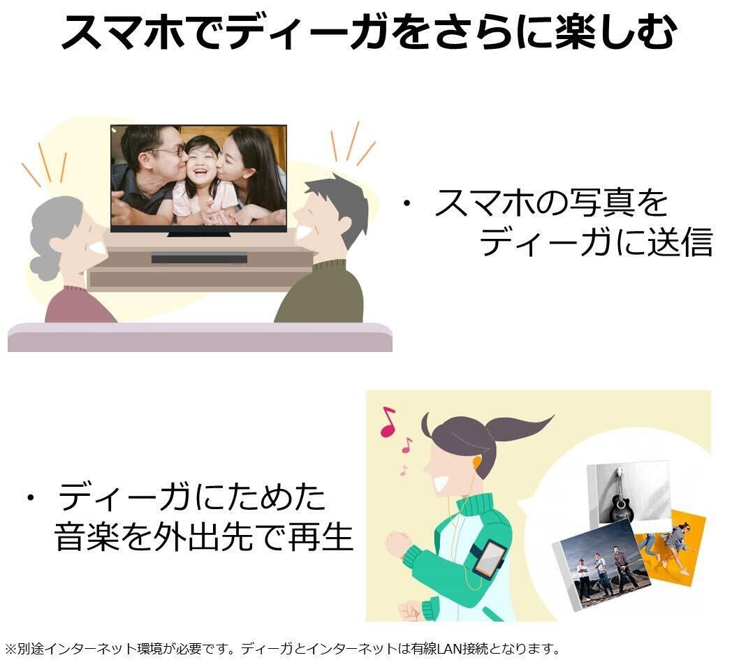 ※1:スマートフォンアプリ「どこでもディーガ」(無料)のダウンロードが必要です。iOS10.3以降、Android(TM)5.1以降に対応。サービスのご利用には、CLUB Panasonicへの会員登録(無料)と、インターネットサービス「ディモーラ」への機器登録(無料)が必要です。一部サービスの利用には、「ディモーラ」のプレミアム会員登録(有料)が必要です。