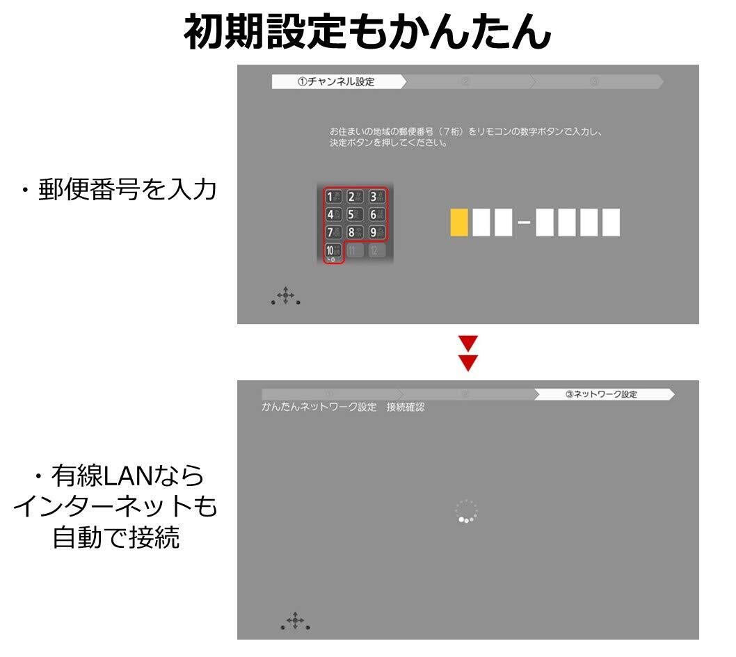 ・郵便番号の入力&ネットワーク設定の2ステップだけで初期設定が完了し、すぐに使える
