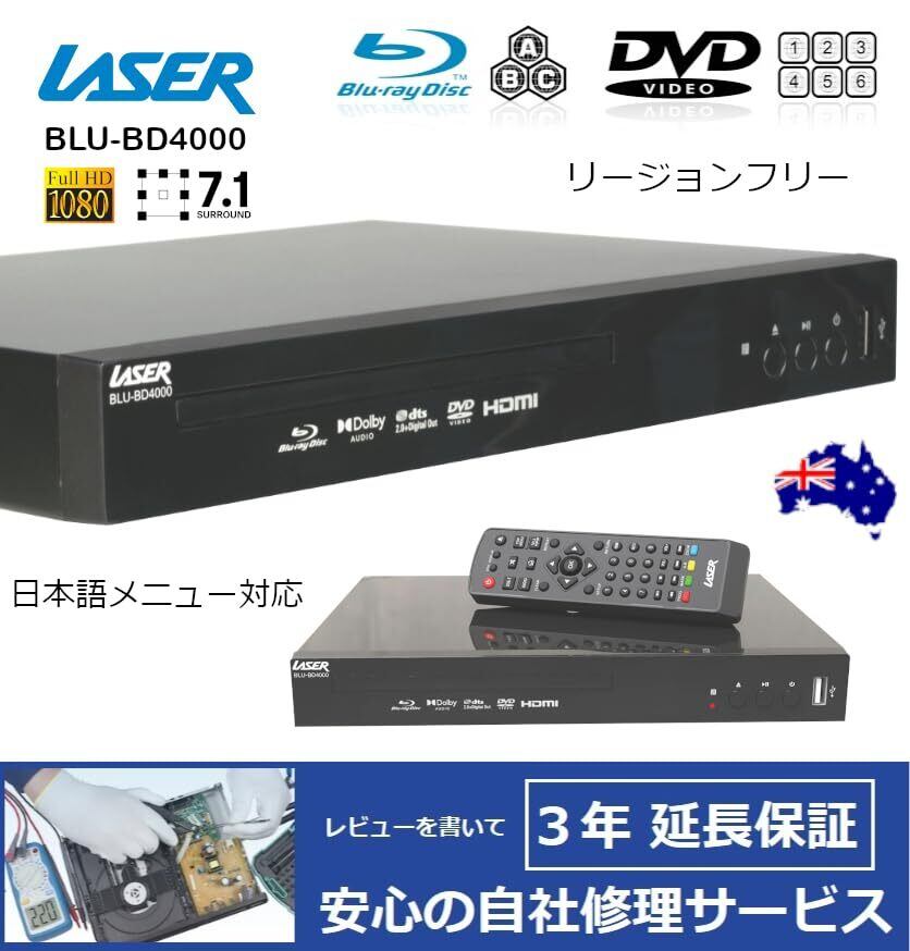 LASER レーザー BLU-BD4000 リージョンフリー BD/DVDプレーヤー Digital 7.1 (リージョン切替説明書、HDMIケーブル付属) 【3年延長可】 [並行輸入品]
