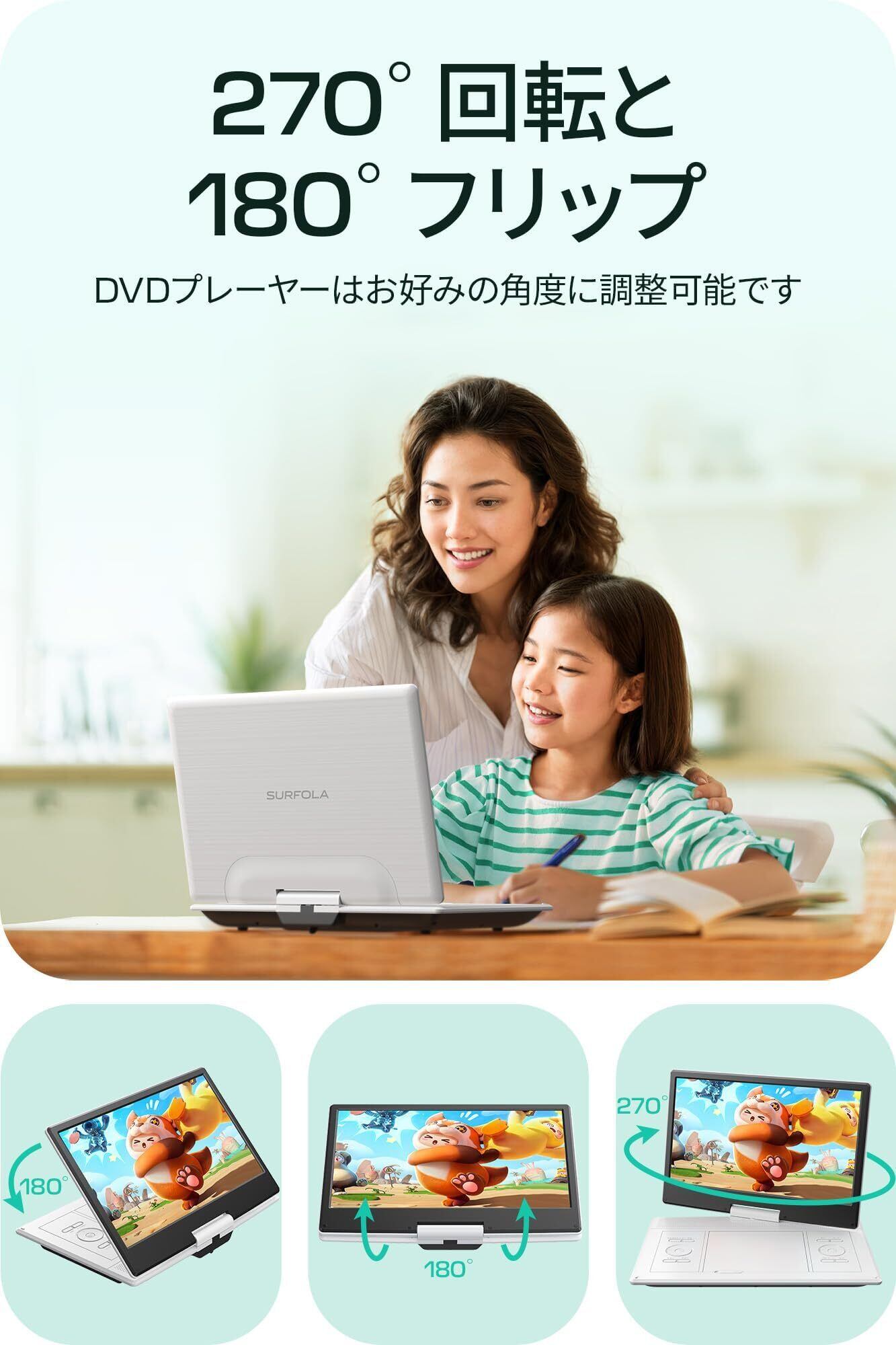 「さまざまなコンテンツに対応」Surfola ポータブルDVDプレーヤーは、リージョンフリー設計で、世界中のDVDを再生可能です。USBやSDカードスロットも備えており、最大16GBのメディアから簡単に再生できます。家族旅行やキャンプなど、外出時のエンターテイメントにぴったりです。(ブルーレイ対応しないです。)