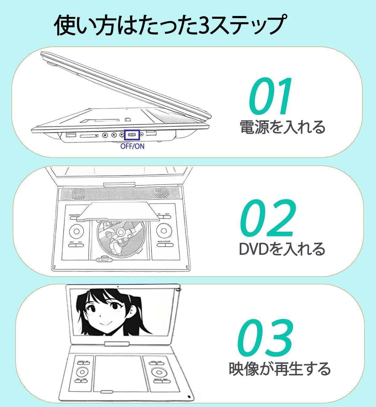 「使いやすい設計」Surfola ポータブルDVDプレーヤーは、子供から高齢者まで誰でも扱いやすいよう、日本語表示の本体ボタンとリモコン、分かりやすい日本語説明書が付属しています。直感的な操作で、安心してご利用いただけます。ご注意:ディスクを読み取る際は、必ず側面にある電源スイッチをオンにしてください。