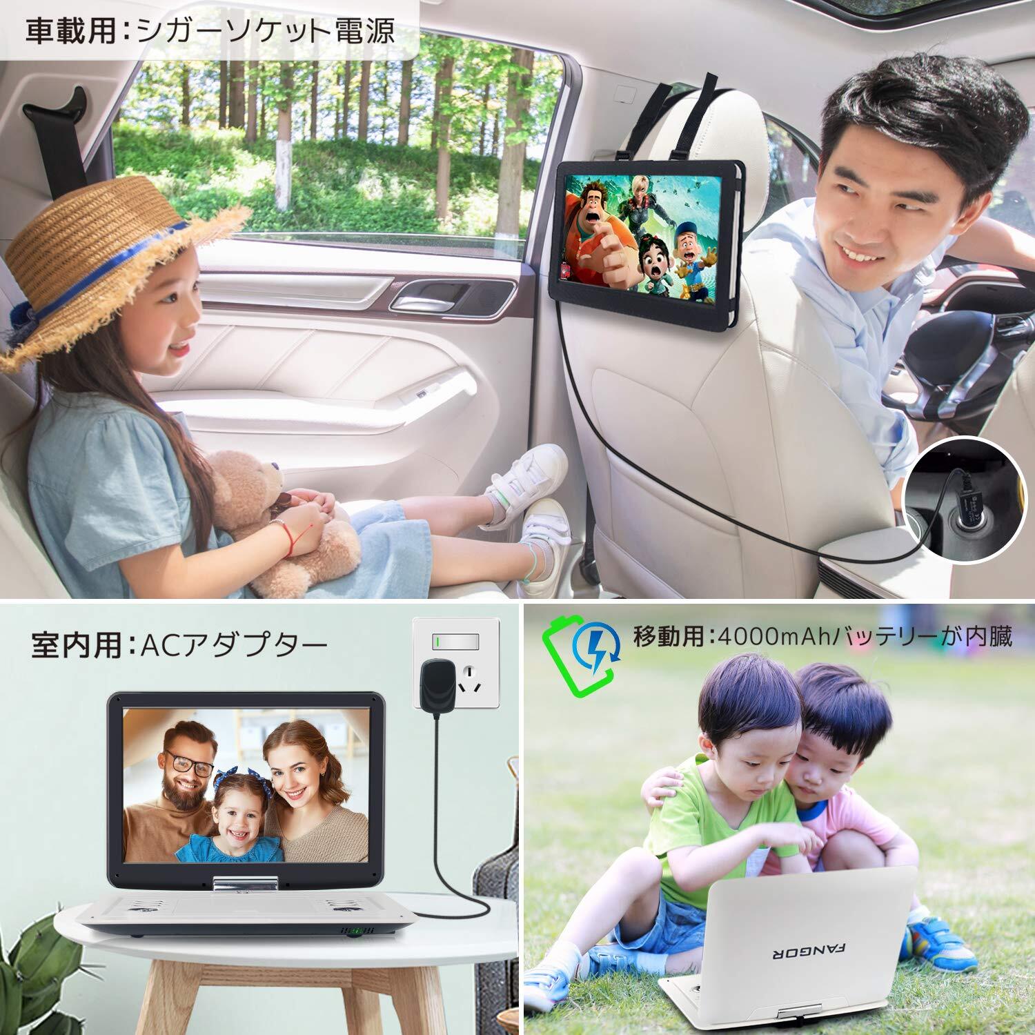 ポータブルDVDプレーヤー 15.5型 FANGOR 車載携帯式DVD 大容量バッテリー内蔵 液晶 画面 14.1インチ 270度回転 3電源 CPRM対応 リージョンフリー 後部座席 3年 日本語取扱説明書付き ホワイト
