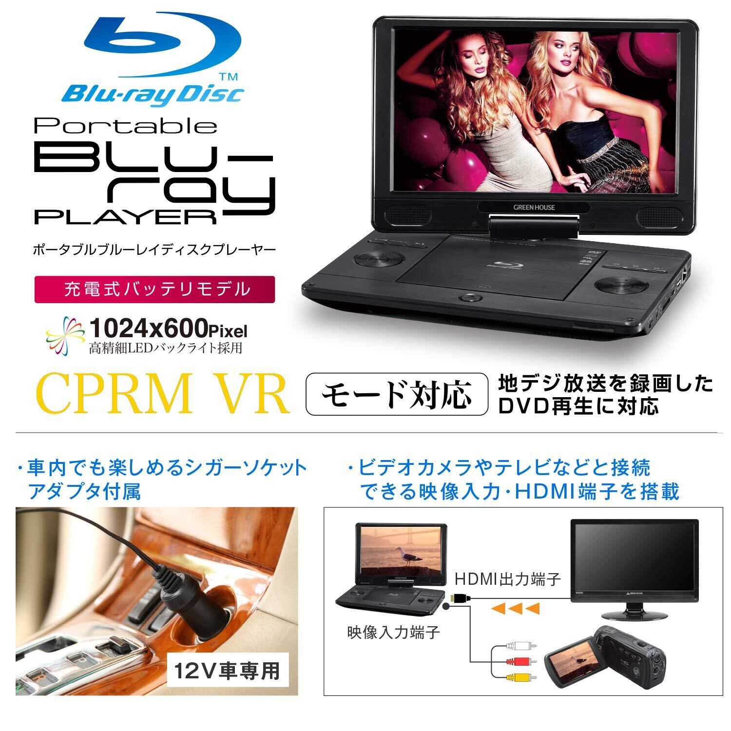 【2022最新】グリーンハウス 11.4型ワイド ポータブルブルーレイプレーヤー SD/SDHC/USB/CPRM対応 GH-PBD11A-BK