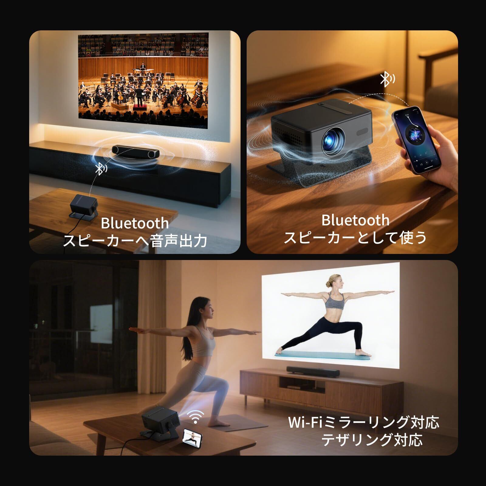 【スマホ投影で思い出共有・ヨガやゲームも大迫力で】最新Wi-Fi6による高速ワイヤレス接続に対応。スマホ画面を瞬時にミラーリングできるため、年末の集まりで旅行の写真や動画を壁に大きく映し出し、家族と「思い出の共有」を楽しむのに最適です。ヨガ動画を等身大で投影すれば、インストラクターの動きが見やすく、冬の運動不足を解消する「宅トレ」も本格的に。SwitchやPS5をHDMIで繋げば、親戚が集まる冬休みに大画面でのゲーム大会が盛り上がります。Bluetooth5.4も搭載し、夜間はBluetoothイヤホンで静かに没頭することも可能。大切な人へのクリスマスプレゼントとしてはもちろん、新年を健康的で楽しくスタートさせるアイテムとしてもおすすめです。(3年付き・日本語サポート対応)本体サイズ(スタンド含め):19*13*12cm、重量:0.7KG電圧:100-240V対応 連絡先:[email protected]