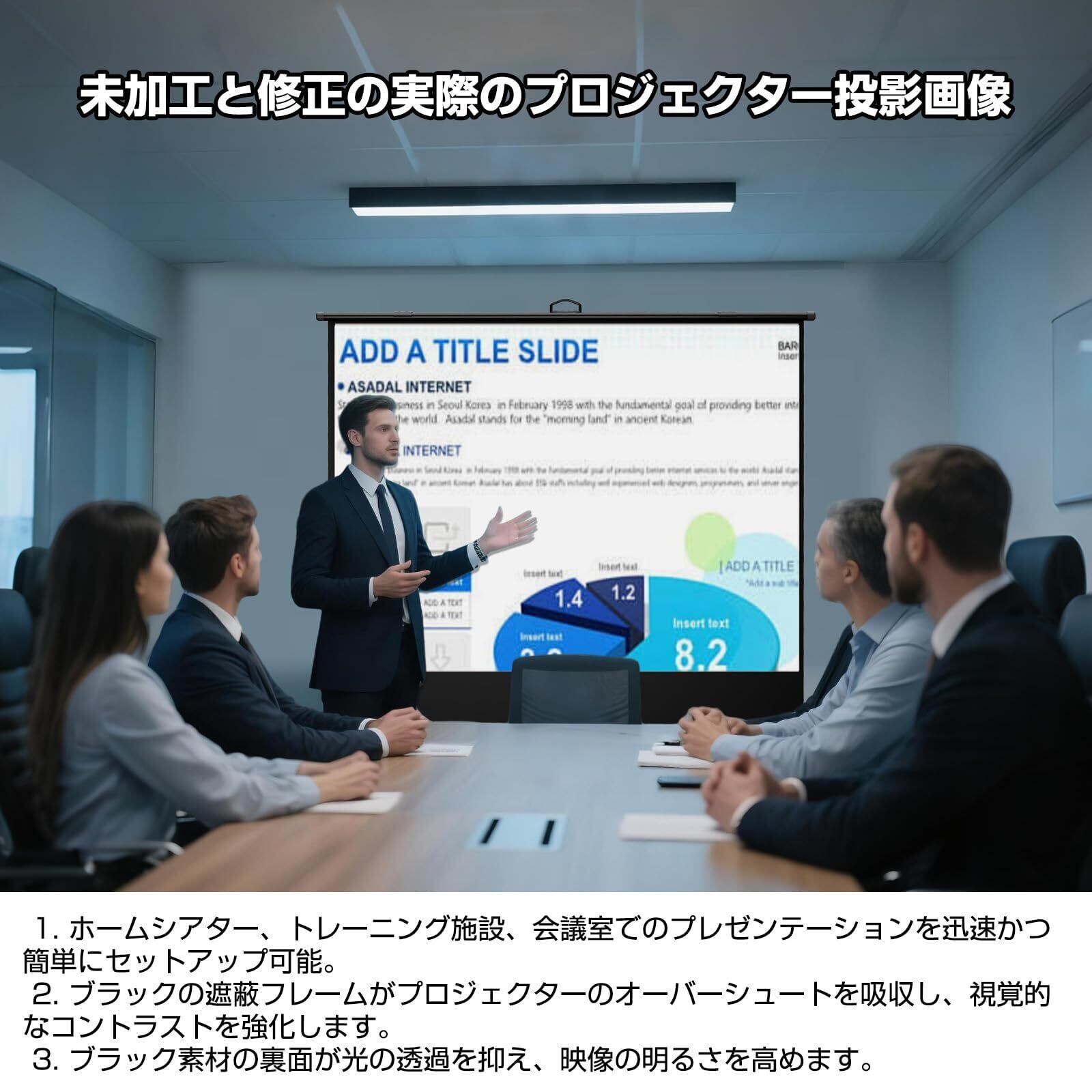 【ご注意&安心サポート】※本製品は超短焦点および短焦点プロジェクターには対応しておりません。※通常のプロジェクターでも、投射距離が極端に短い場合、投影画像に歪みが生じる可能性があります。