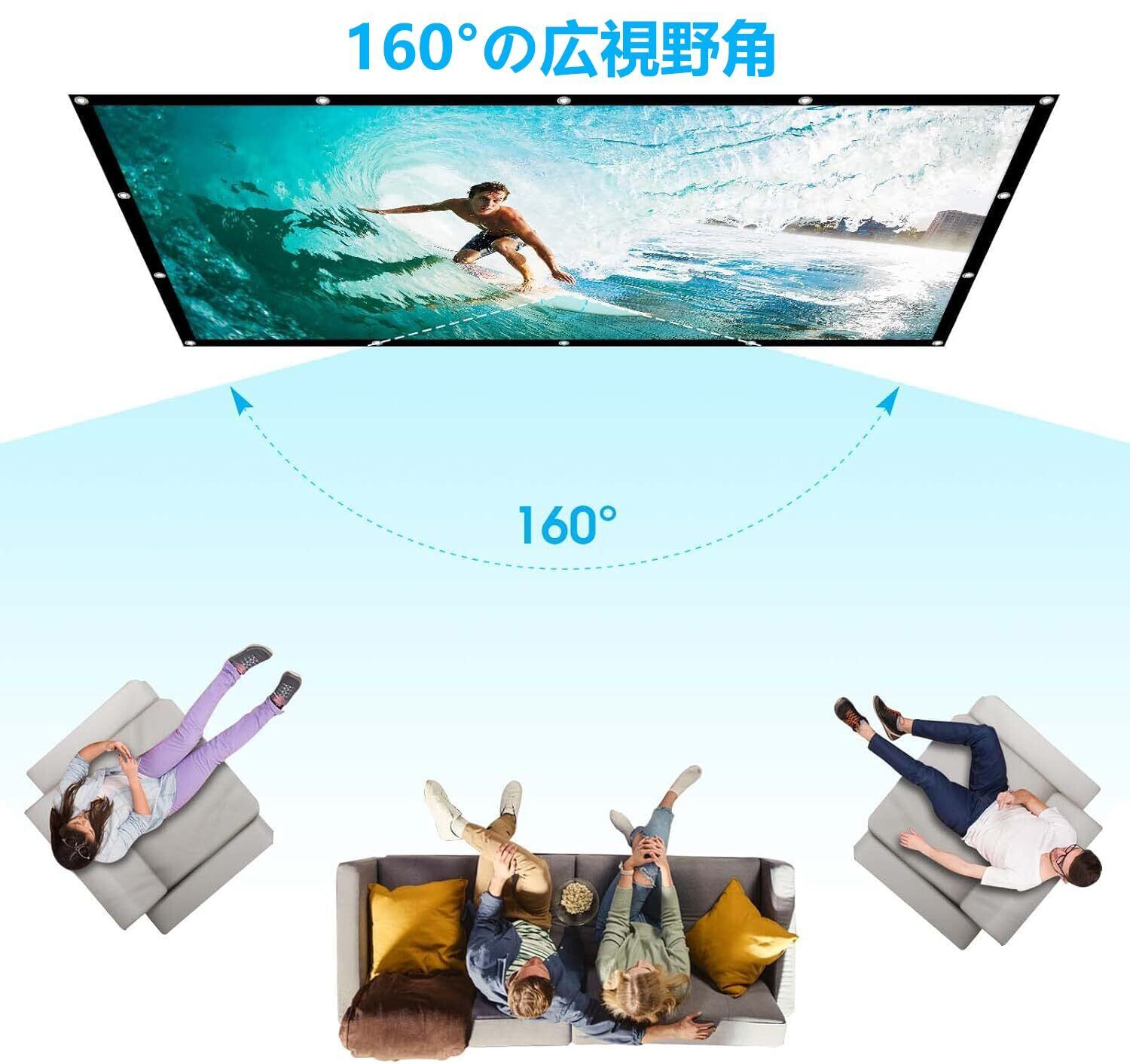160°の超広視野角:最大160°の超広視野角により、家族で臨場感あふれる視聴体験を共有し、忘れられない思い出を作ることができます。この両面屋外プロジェクションスクリーンは、リアプロジェクションとフロントプロジェクションにも対応しています。