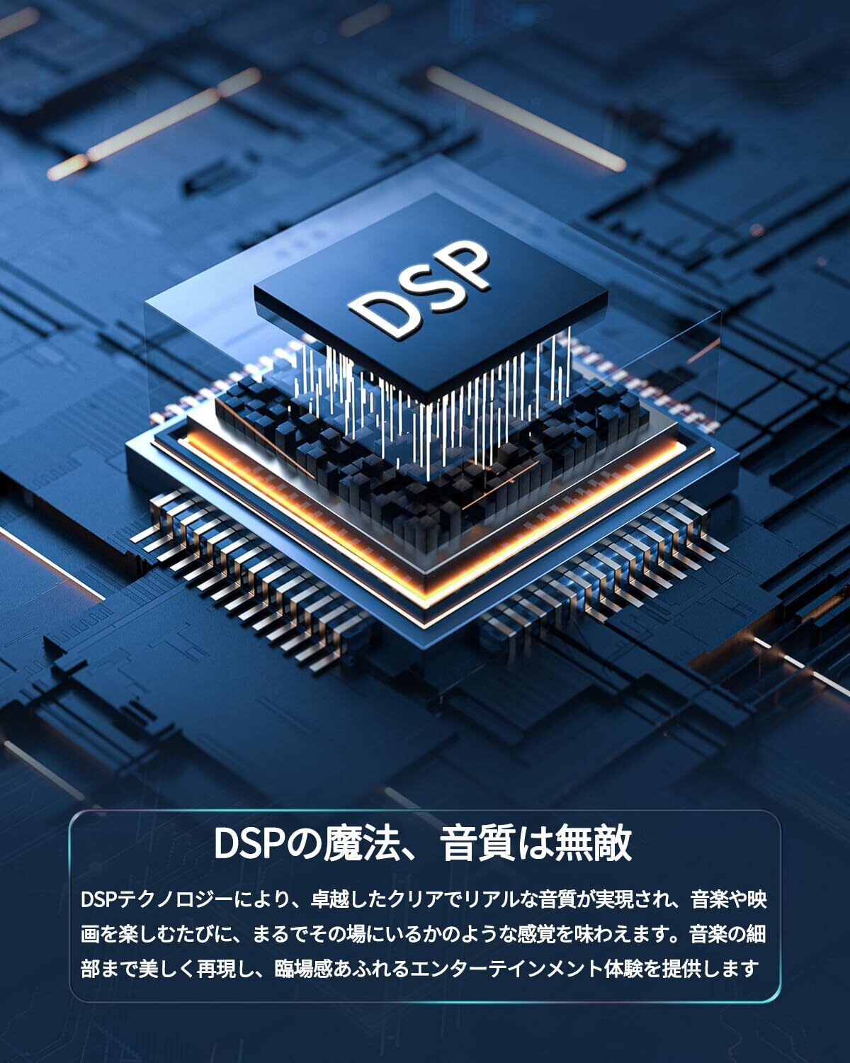 【3つのサウンドモード·臨場感あふれるサウンド】 シーンに合わせてカスタマイズ可能な3つのサウンドモード。映画モードでは迫力の重低音、音モードではクリアな音質、3Dモードでは明瞭な会話が楽しめます。付属のリモコンで簡単に切り替え可能で、臨場感あふれるサラウンドサウンドをお好みに合わせてお楽しみいただけます。DSPテクノロジーにより、卓越したクリアでリアルな音質が提供され、音楽や映画を楽しむたびに、まるでその場にいるかのような感覚を体験できます。音楽の微細なニュアンスまで美しく再現し、臨場感あふれるエンターテインメント体験をお届けします。