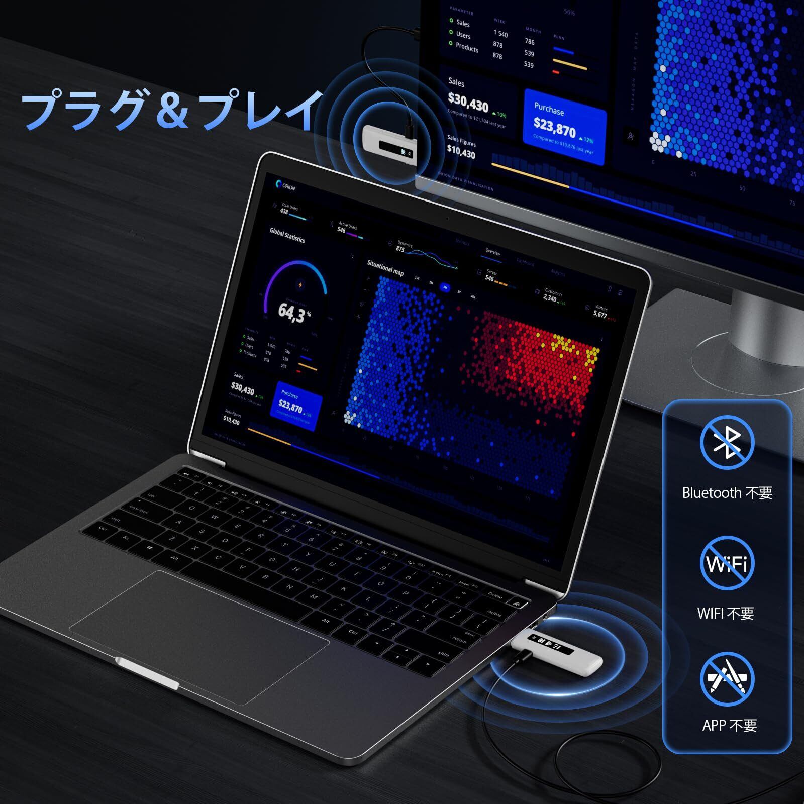 特徴 50m安定転送距離, 8台増設可能, WIFI&設定不要, ワイヤレスHDMI 無線 無線化, 映像音声同期出力