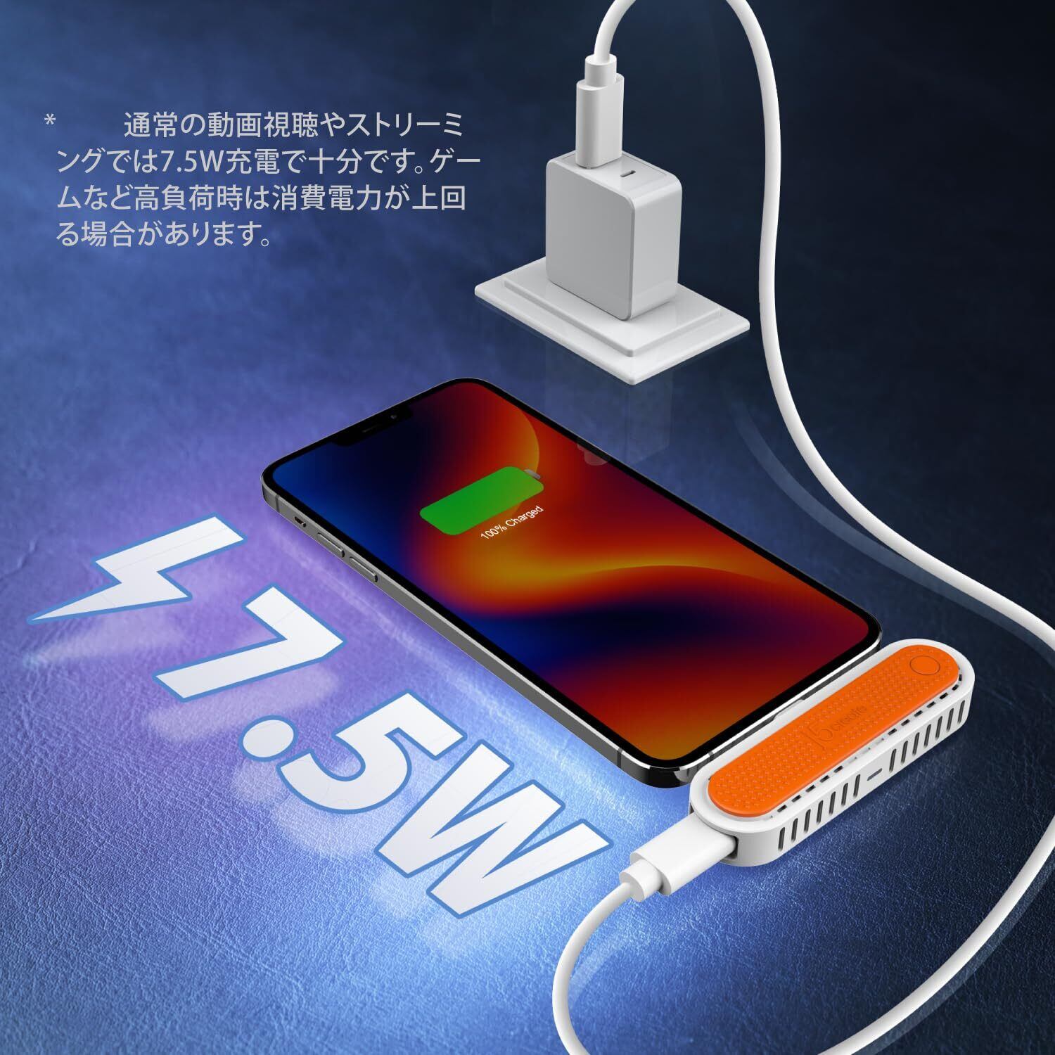 【 同時給電】 送信機は充電用TypeCポート搭載。スマホやタブレットに7.5W給電しながら映像出力可能。長時間の会議や動画再生でもバッテリー切れの心配なし。