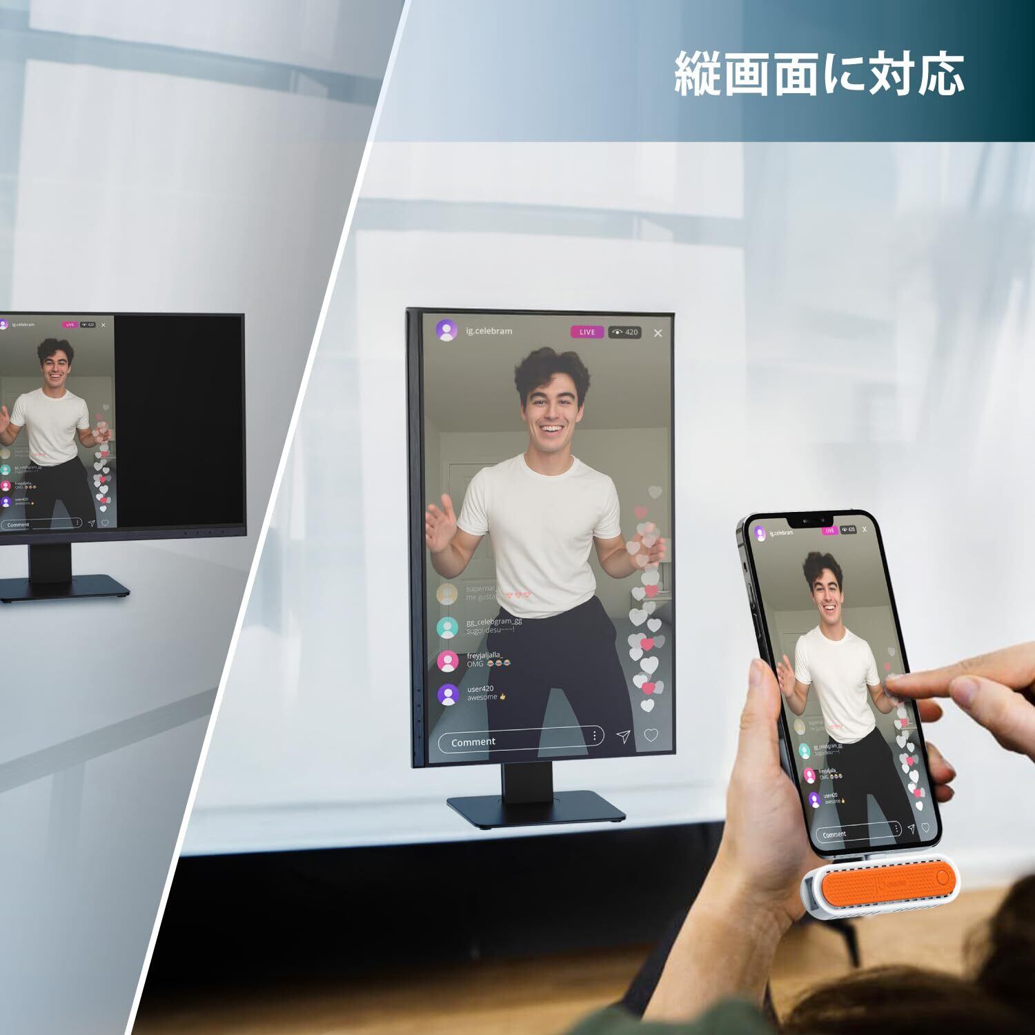 【 縦横表示対応】 縦向きアプリ(TikTok、Instagram)も横向き動画も大画面で楽しめる。さらに、広告ディスプレイやデジタルサイネージにも最適。縦型モニターでSNS動画、横型でプレゼン資料など柔軟に対応。