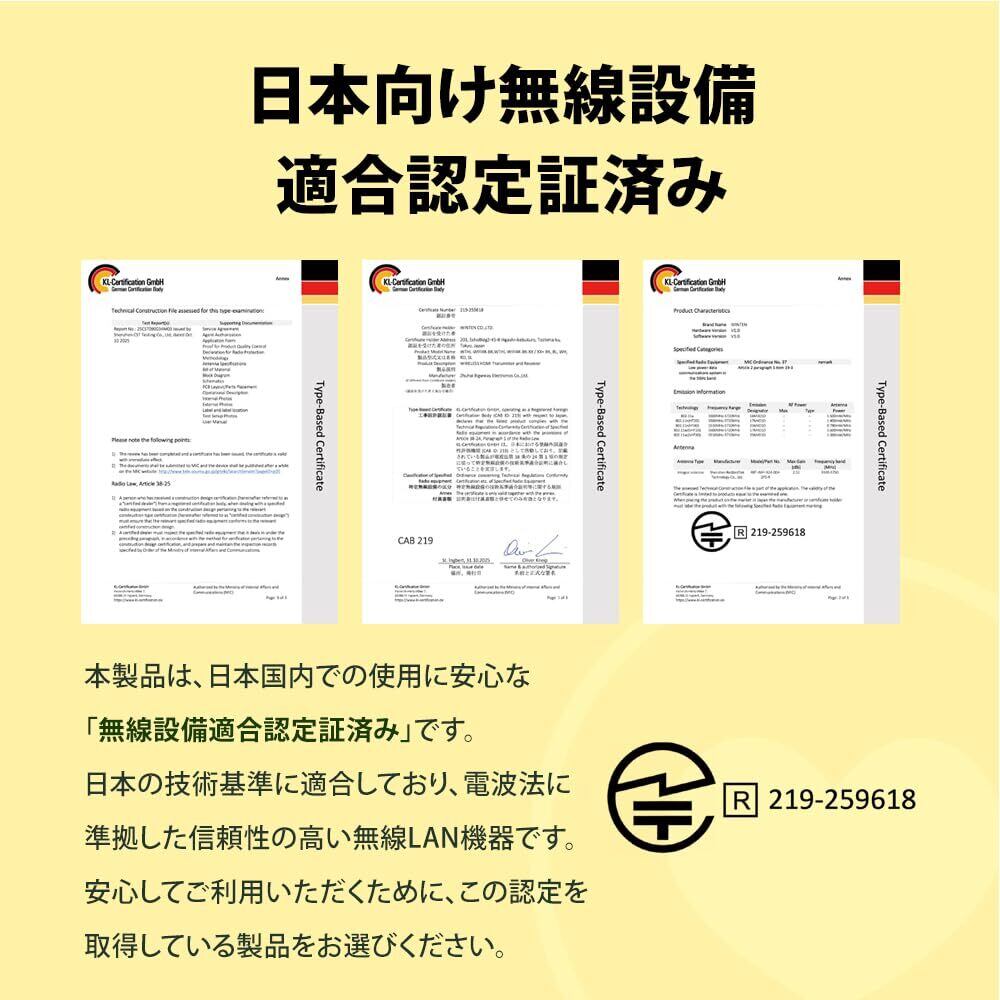 【日本国内で安心して使える技適認証取得済み】日本の電波法に適合した技適認証を取得。法人利用や公共施設でも安心して導入いただけます。