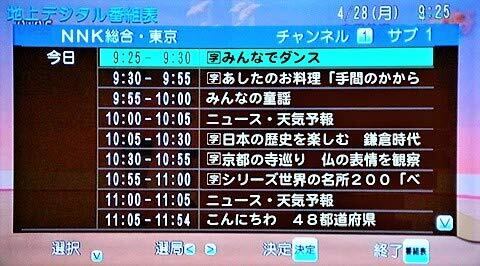 画面が小さい小型のブラウン管テレビでも見やすい1チャンネル表示方式です。見たい番組をチャンネル毎に8日分まで表示できます。