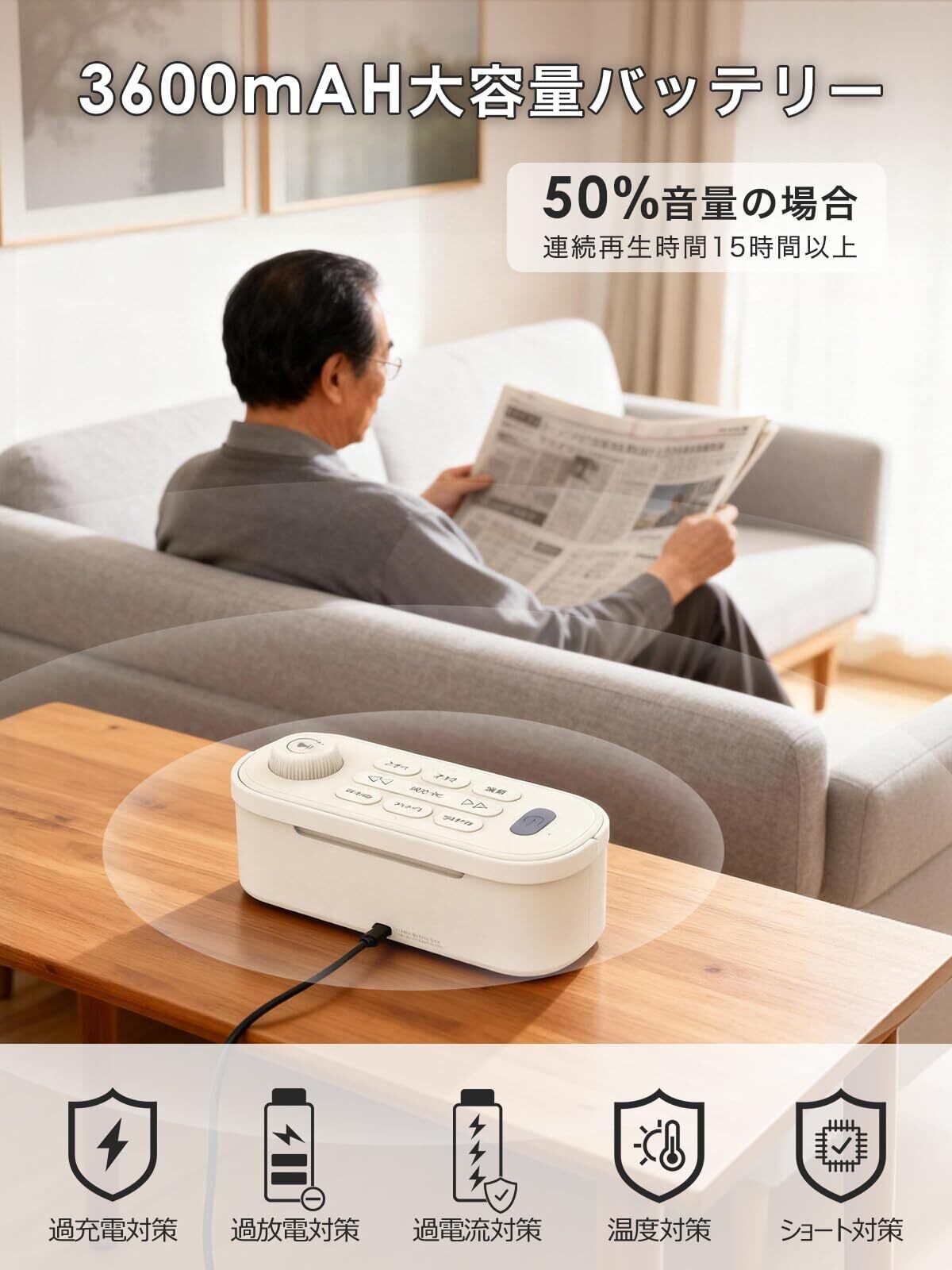 【業界初20Wの強力サウンド波・高齢者にも聴こえやすいクリア音質】Youon Proは手元スピーカー業界初となる最大20Wの強力サウンドを搭載。深みと広がりのある音が部屋全体に響き渡り、テレビ番組のセリフや効果音も驚くほどクリアに再生します。「テレビスピーカー 高齢者」や「手元スピーカー テレビ用」をお探しの方に最適です。