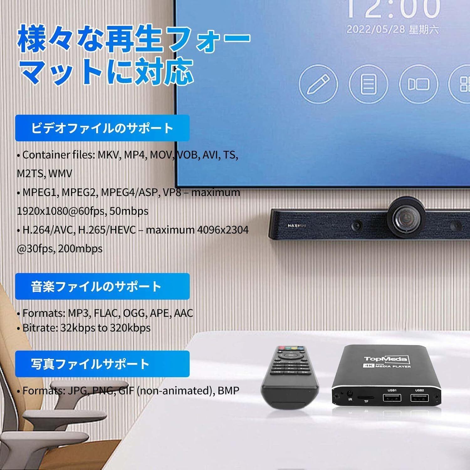 メディアプレーヤー 4K 最大4096*2160p 30fps対応 メディアプレイヤー 動画・音楽・写真再生プレーヤー USB SDカード再生プレーヤー HDMI・コンポジット出力対応 付属HDMIケーブル 家庭用 仕事 店頭用