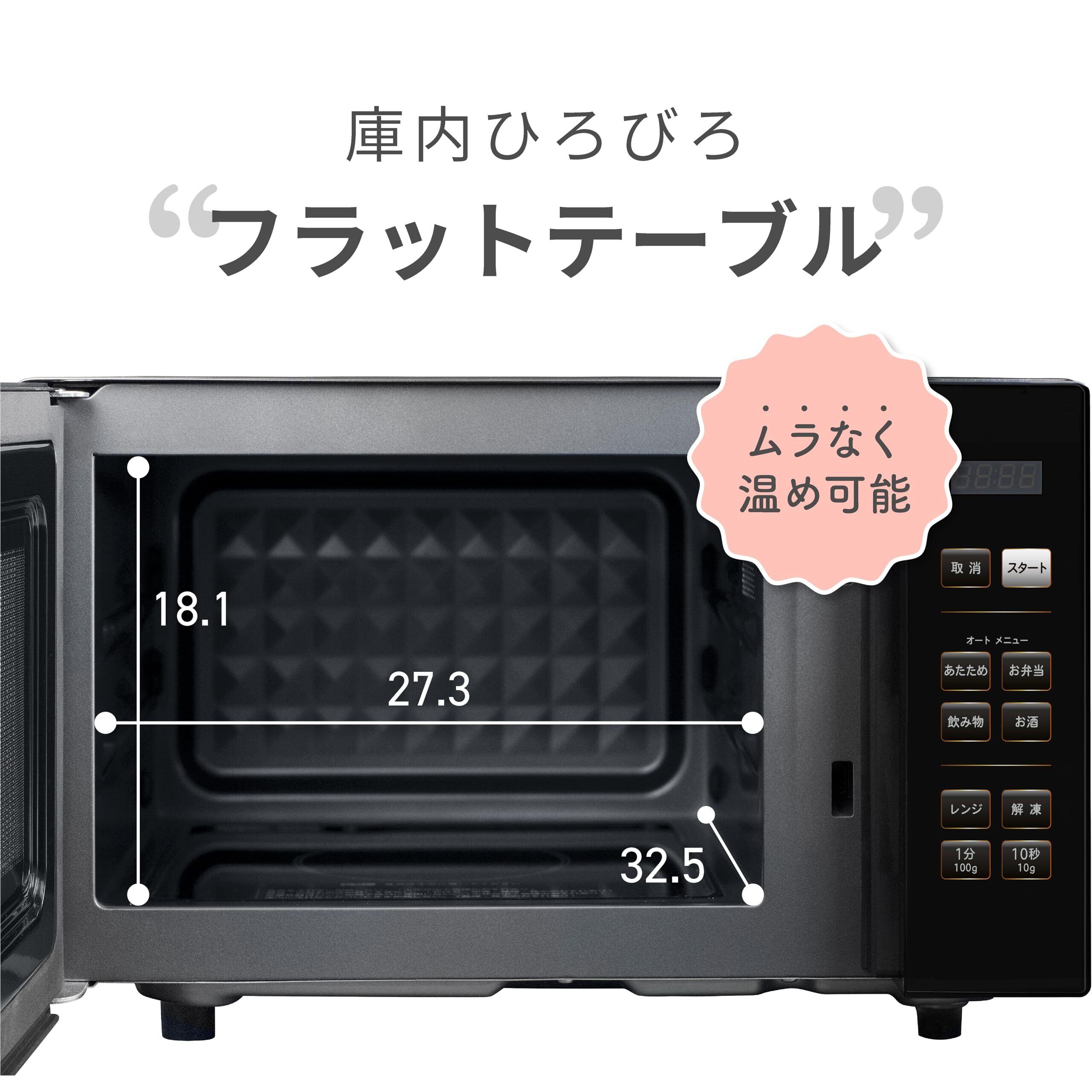 [山善] 電子レンジ 18L 単機能 一人暮らし 二人暮らし ヘルツフリー フラットテーブル オートメニュー4種類 全国対応 タイマー機能 チャイルドロック搭載 ブラック PRW-F180(B)