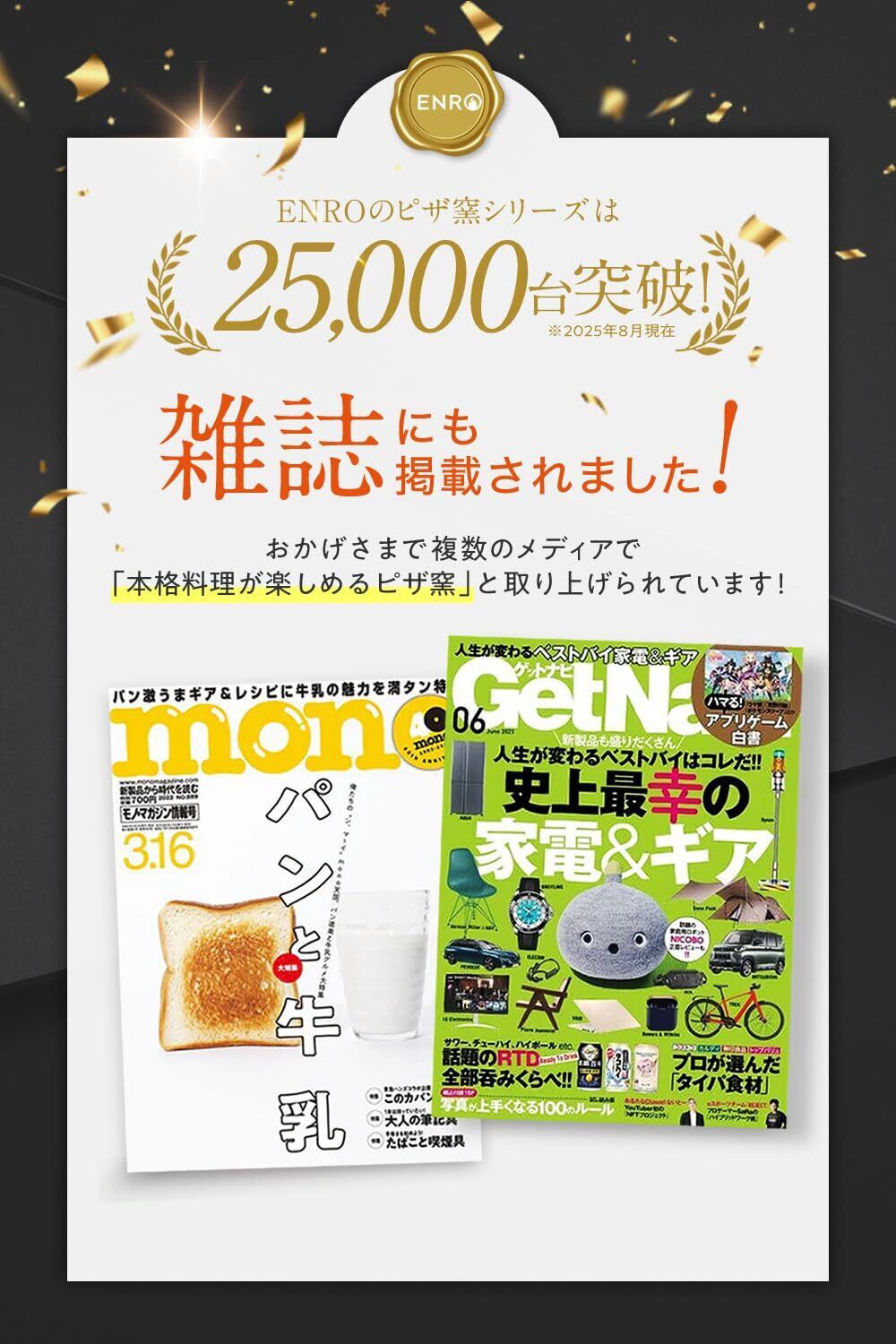 【ついに登場!450℃が出せる小型家電本格ピザ窯】ENROの窯焼名人シリーズの累計販売台数は30,000台を突破。450℃の高温が出せるのに、普段はトースターとして活用できる家電ピザ窯!