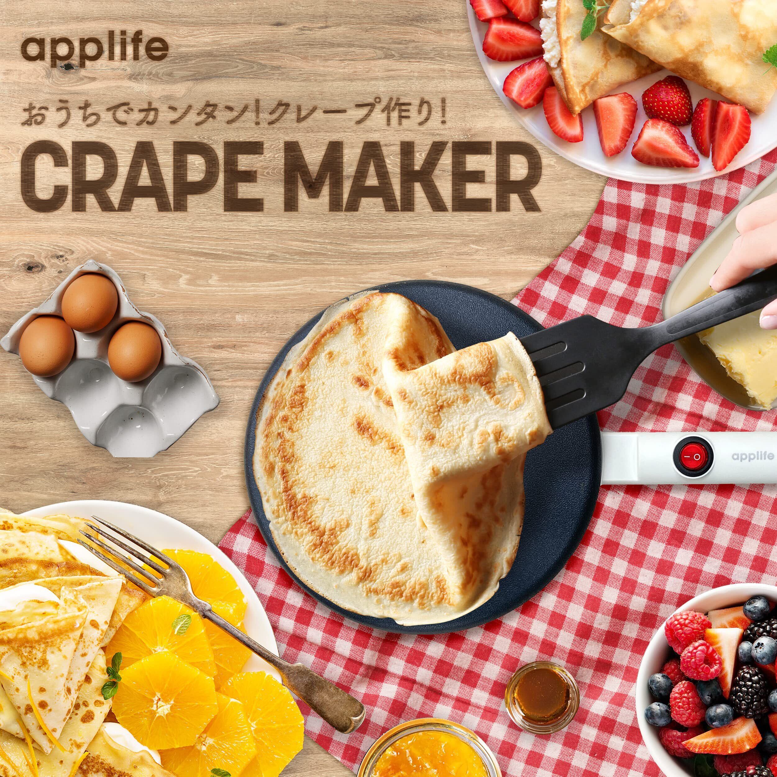 【特価セール】applife クレープメーカー | ハンディクレープ 電源スイッチ付 省電力 専用皿付 ひっかけフック付き 電気式 大きいクレープ 手軽にデザート 簡単 ミルクレープ